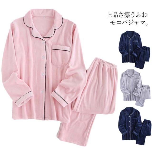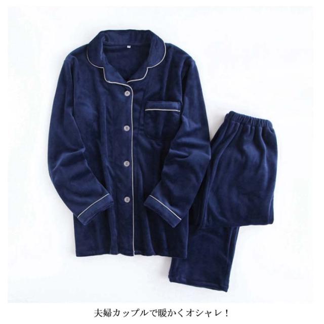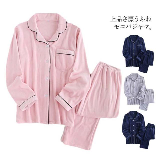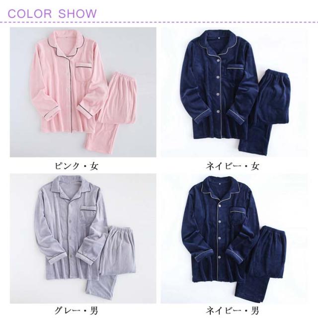 パジャマ ルームウェア 前開き テーラードカラー レディース メンズ ペアルック 夫婦 カップル ふわモコ ふわふわ もこもこ 暖かい 秋服 冬服 上下セット セットアップ パジャマ クラシカル シンプル