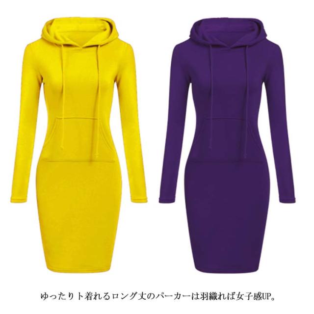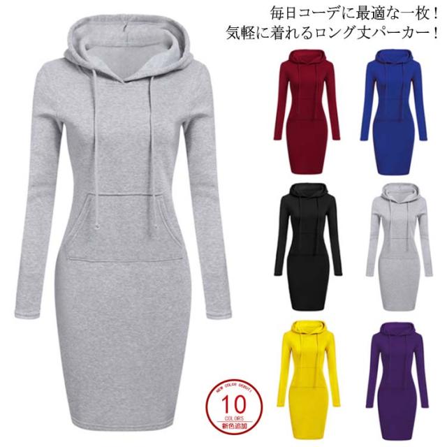 トレーナー パーカー レディース トップス ロングパーカー 長袖 ロング丈 チュニック プルオーバー フード付き カジュアル 薄手 全10色 スウェット お洒落 送料無料