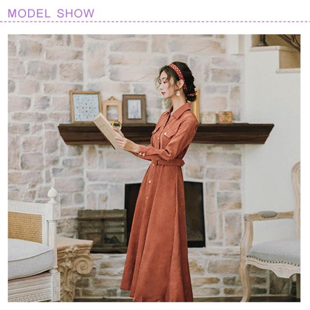 | シンプルな中に甘さをのせたロングシャツワンピース。 ウエスト部分にはさりげないリボンベルト付きでくびれラインも強調できます。 しっとり上品なコーデュロイ生地と温かみある色合いで、シックな雰囲気に仕上げました。 フロントボタン全開タイプで秋冬の装いを華やかに彩る大人らしいitem。 余計な飾りなどなくシンプルながら大人らしい一着で上品にまとまります♪ | |