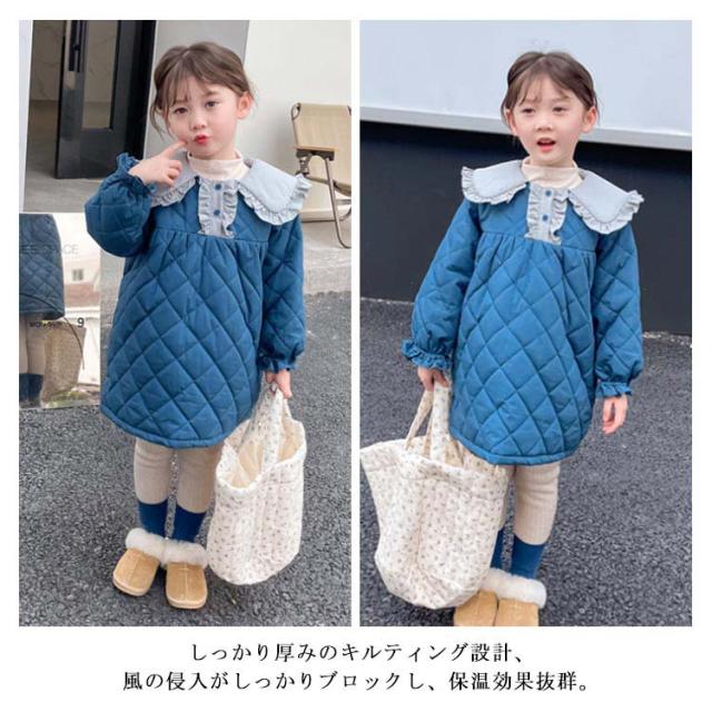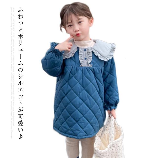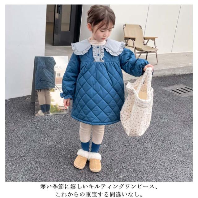 赤ちゃん キルティングワンピース 厚手 ゆったり 80-130 子供服 秋 長袖 ワンピース 女の子 キッズ 中綿入り