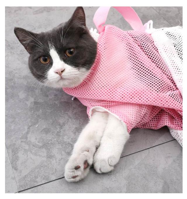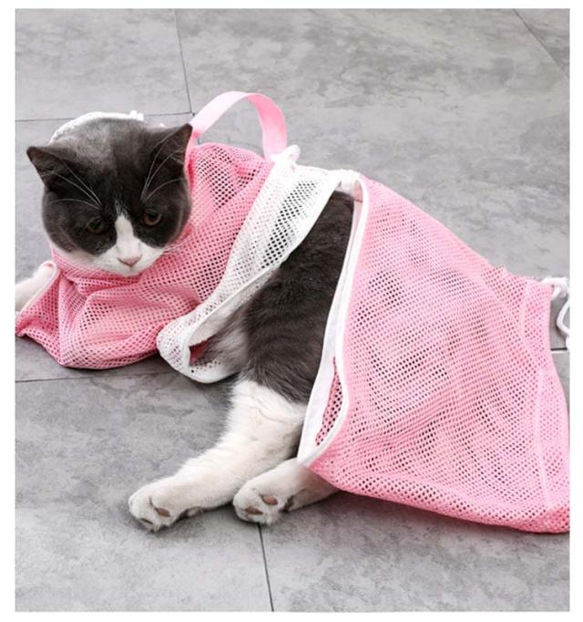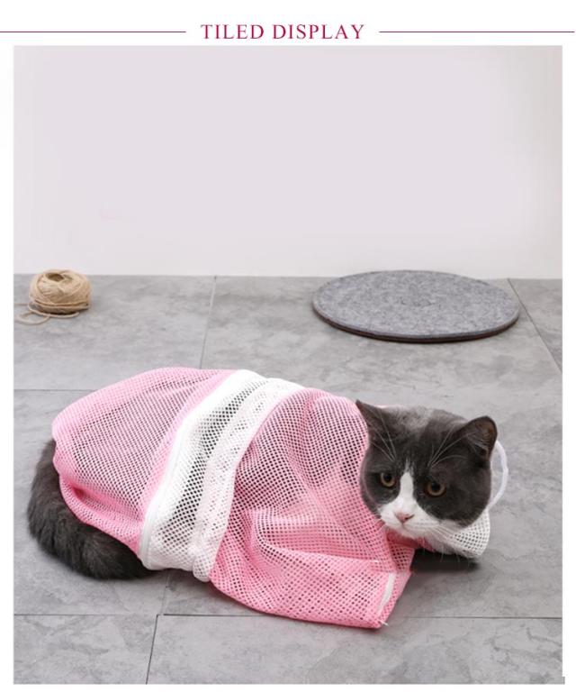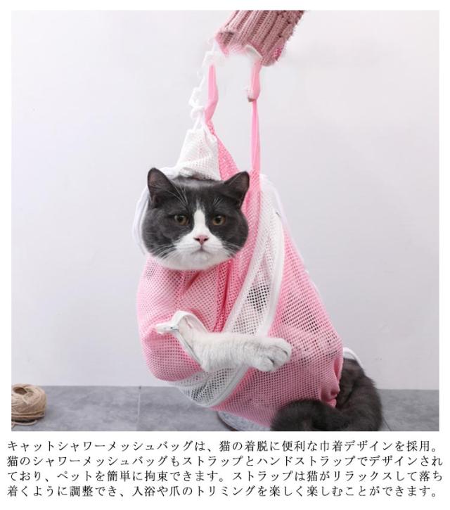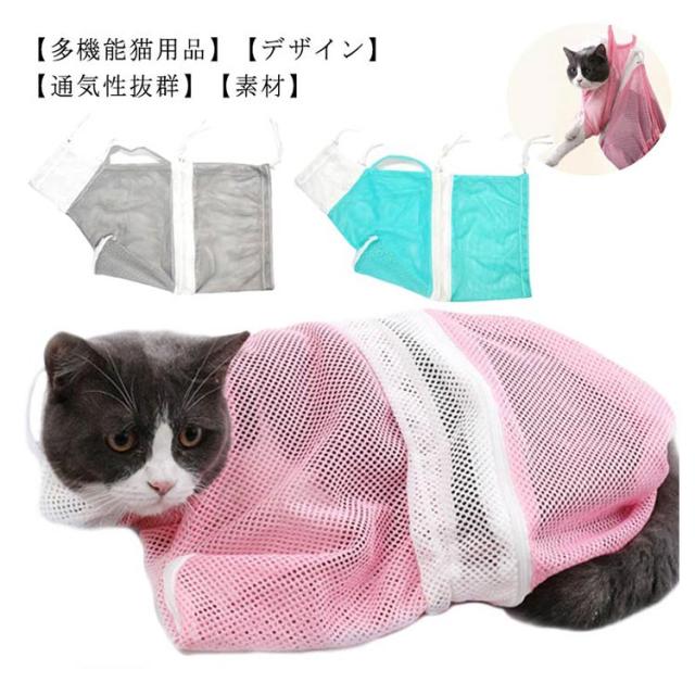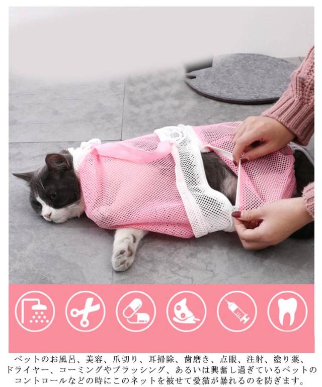 猫用 みのむし袋 猫用ネット おちつくネット 保定袋 キャットバッグ ペットネイル トリミングバッグ お風呂 爪切り 点眼 耳掃除 シャンプー 脱走防止 自宅 ペットサロン メッシュ 多機能