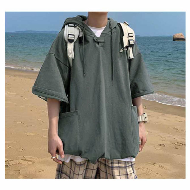 | 定番の夏服として半袖プルオーバーパーカーです。 サイズ感が大きめのパーカーは体型をカバーする効果があり、着痩せが期待できます。 フード付き、着こなしのアクセントになる凝ったデザインを取り入れます。 年齢を選ばず、日常着・通勤通学・旅行・カジュアルコーディにもスポーツ・アウトドアにも活躍できます。 | |