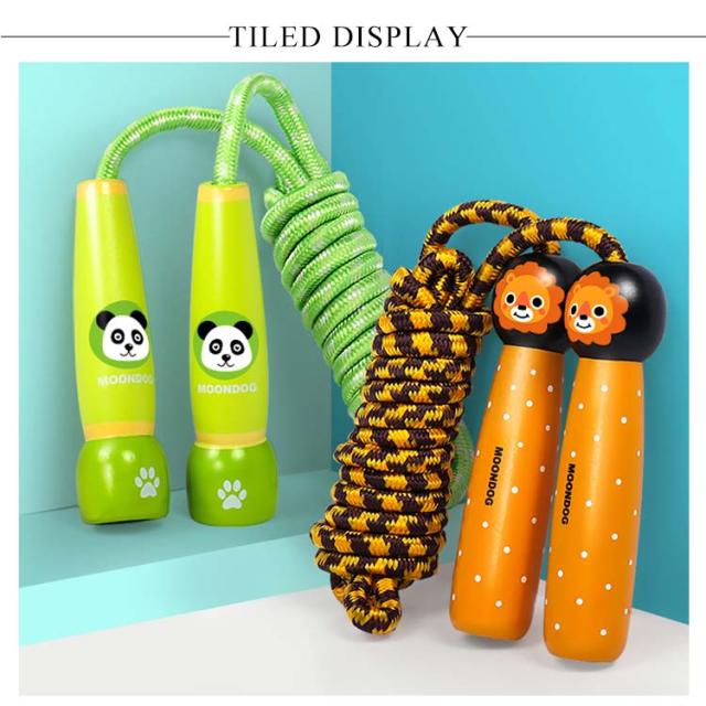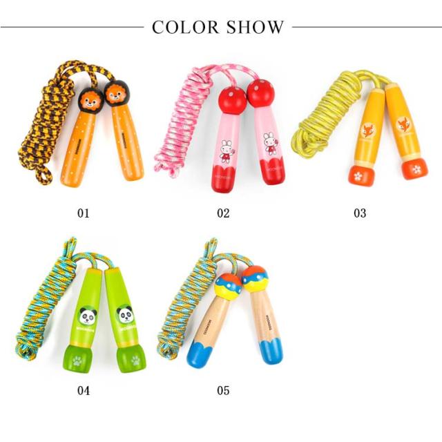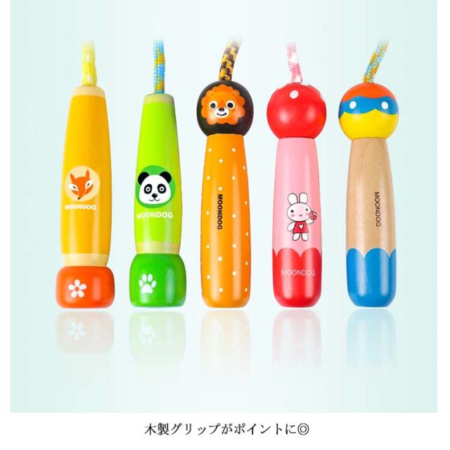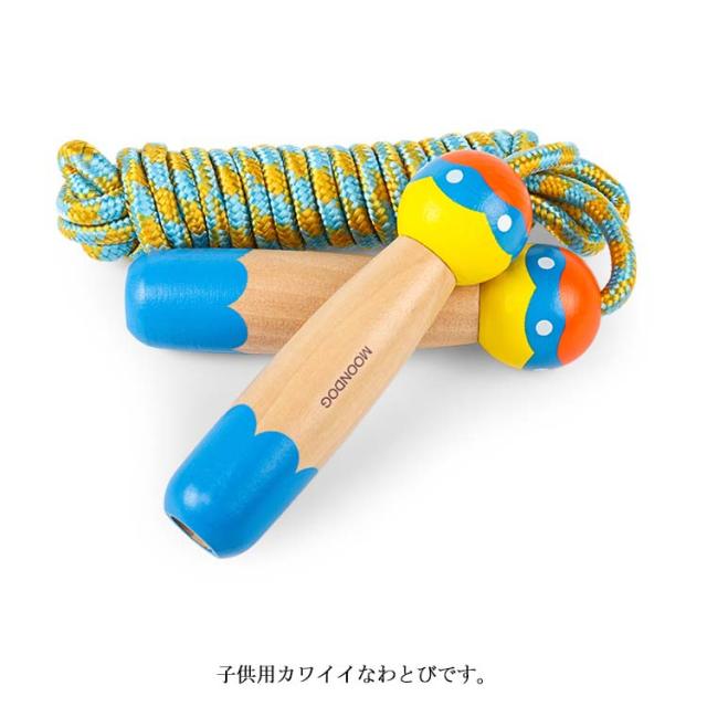 | 子供用カワイイなわとびです。 木製グリップがポイントに◎ グリップ(持ち手)の中で、結び目を作って、長さ調節ができます。 | |