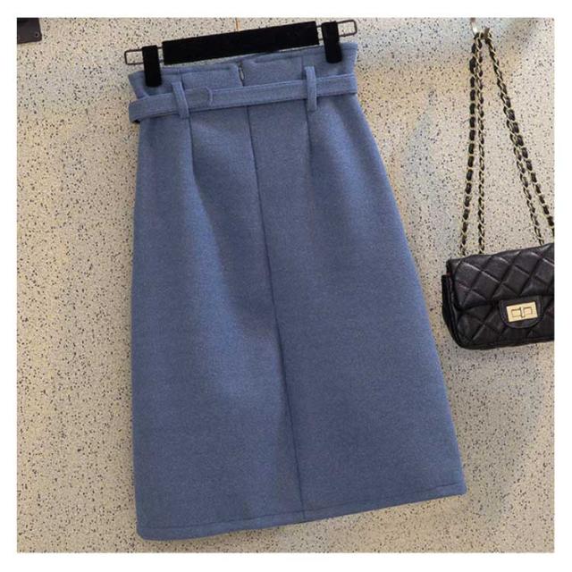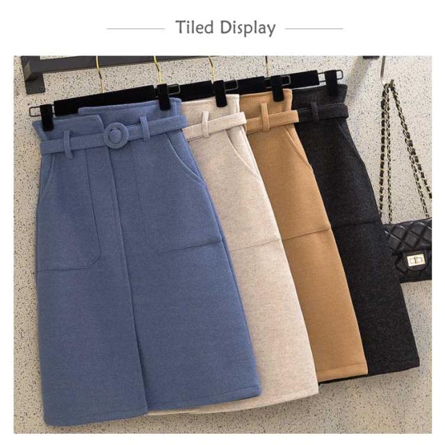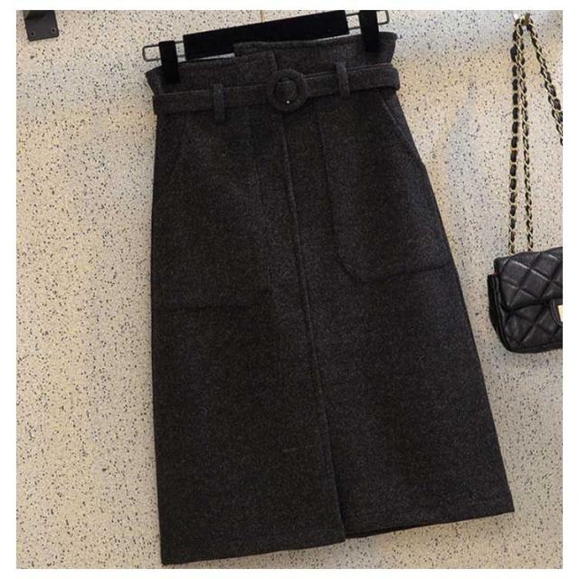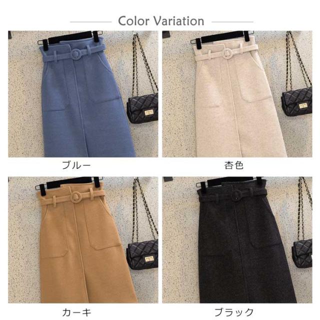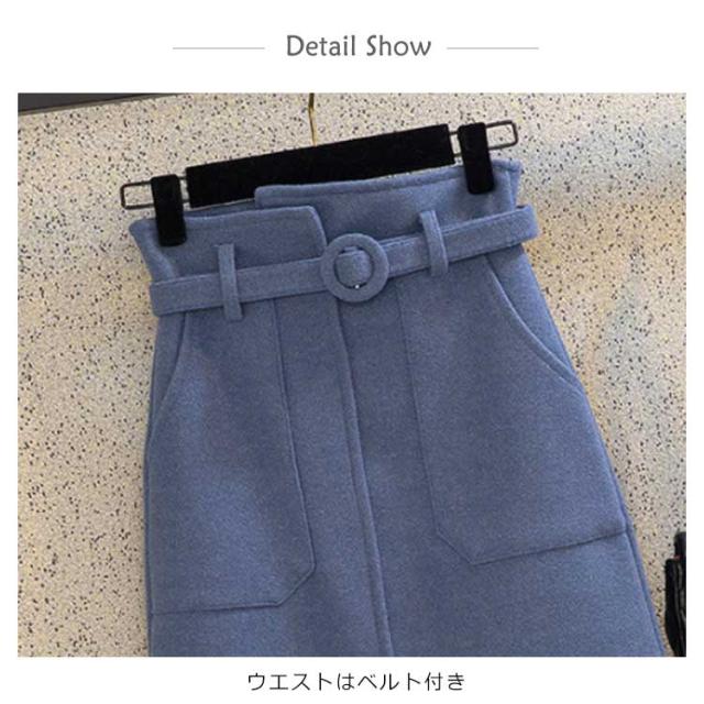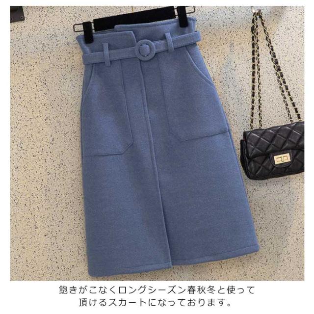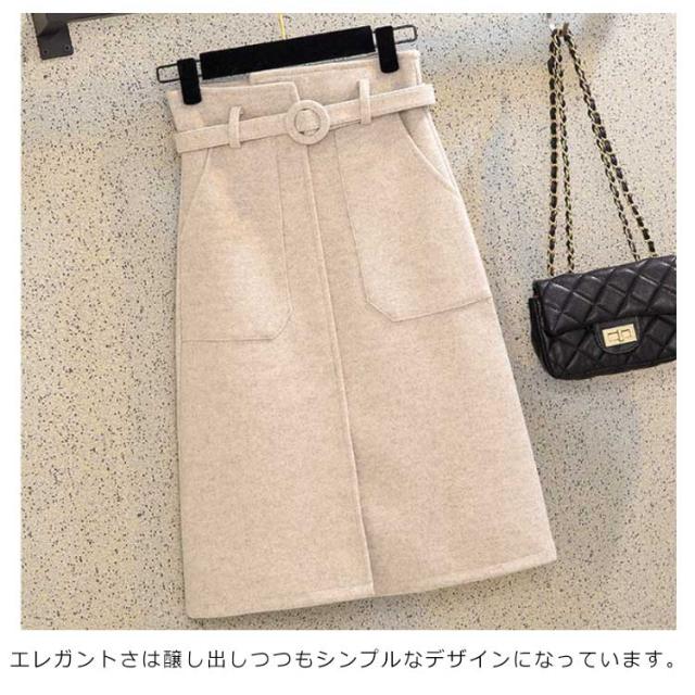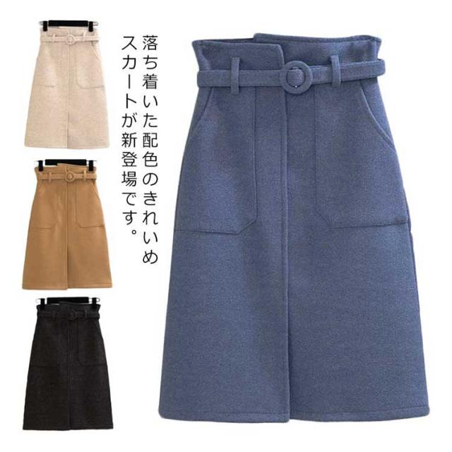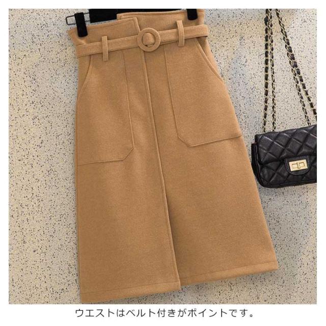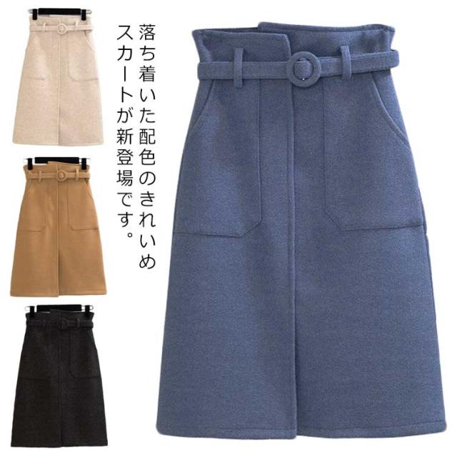 《送料無料》タイトスカート 膝丈 ペンシルスカート レディース ハイウエスト ベルト付き 無地 厚手 ラシャスカート 秋冬 ハイウエスト チューリップスカート 台型スカート ミモレ丈 ミディスカート 通勤 オフィス 新作