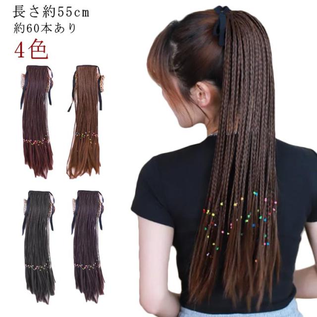 編み込みウィッグ エクステ ワンタッチ カラー ダンスウィッグ 55cm コスチューム 女性っぽく カジュアル ナチュラル セミスタイル ロングスタイル コスプレ パーティー イベント 原宿 文化祭 忘年会 出し物