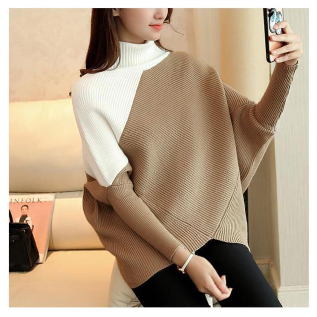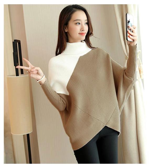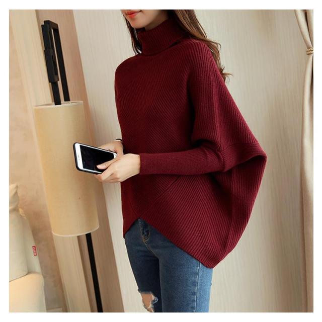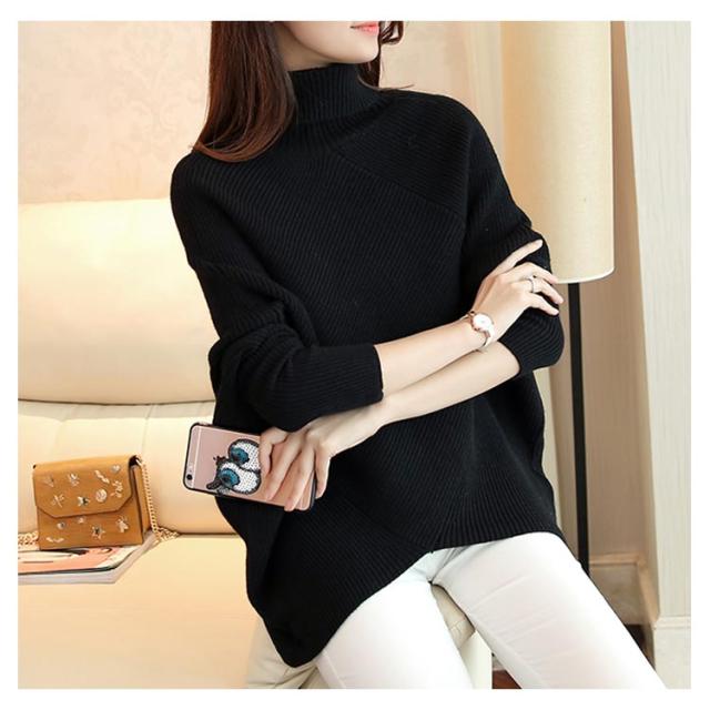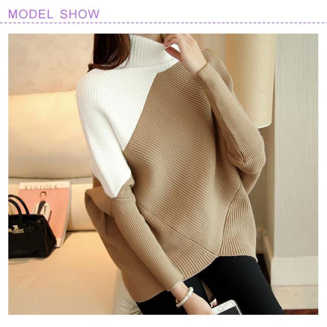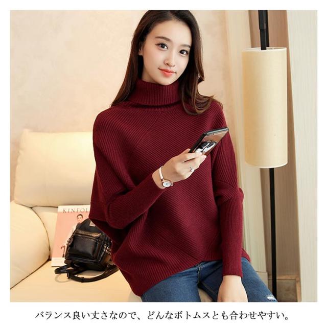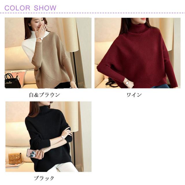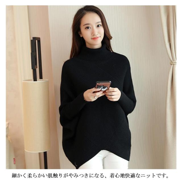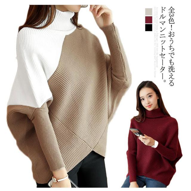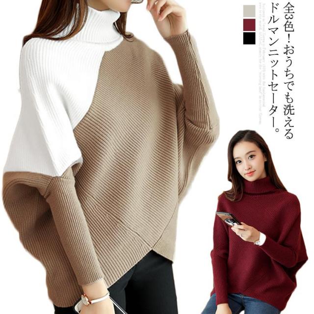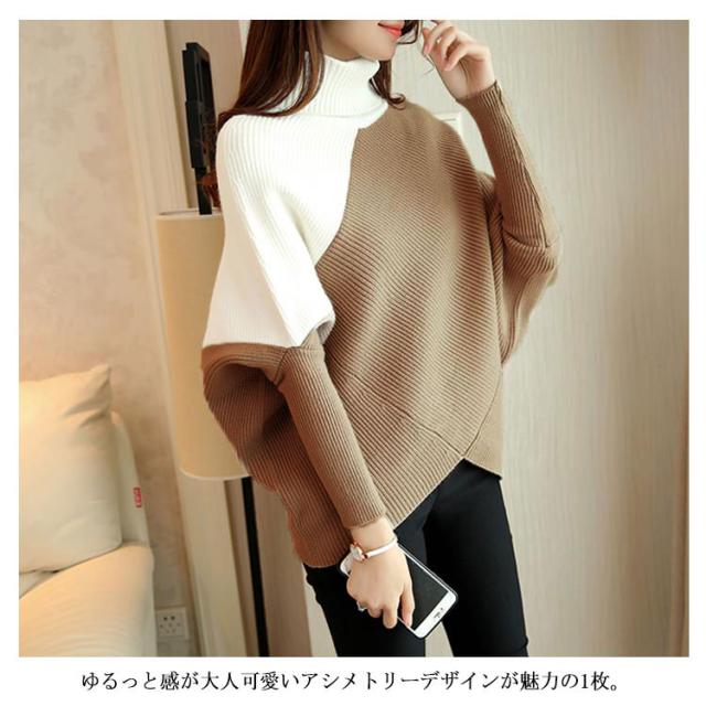 全3色!アシメトリー ドルマンニット ドルマンスリーブ ニットトップス プルオーバー ニット セーター ゆるニット タートル ハイネック ゆったり 体型カバー シンプル おしゃれ 秋 冬