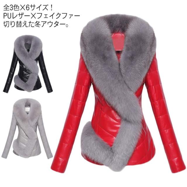 全3色×6サイズ!冬物 フェイクファー切り替え アウター コート ファーコート フェイクファー PUレザー ロングコート 厚手 あったか 防寒 冬服 おしゃれ レディース