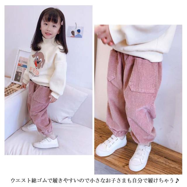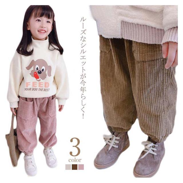 子供パンツ コーデュロイ バルーンパンツ かぼちゃパンツ ワイドパンツ 女の子 男の子 キッズ 子ども パンツ 裏起毛 長ズボン ロングパンツ ゆったり ルーズ バルーン ポケット付き 裏ボア 暖かい 秋冬 通学 通園