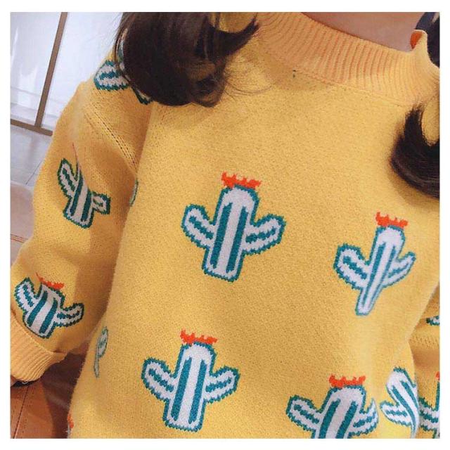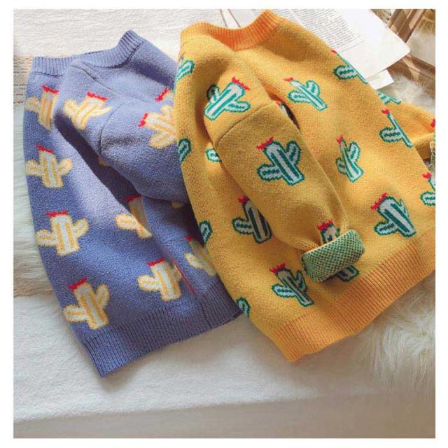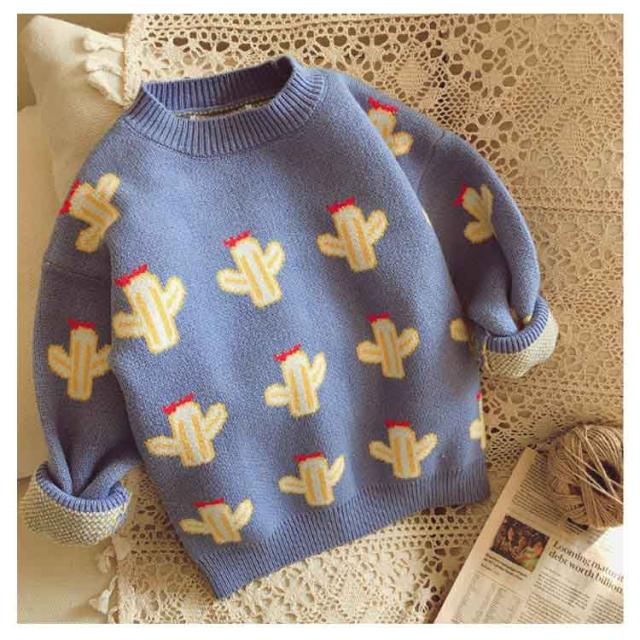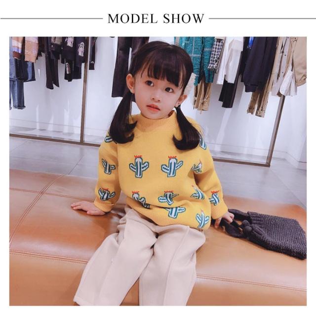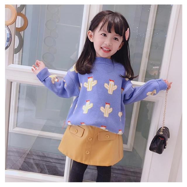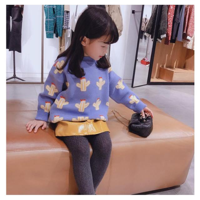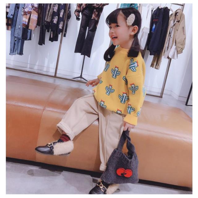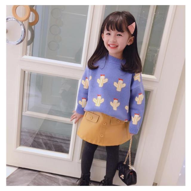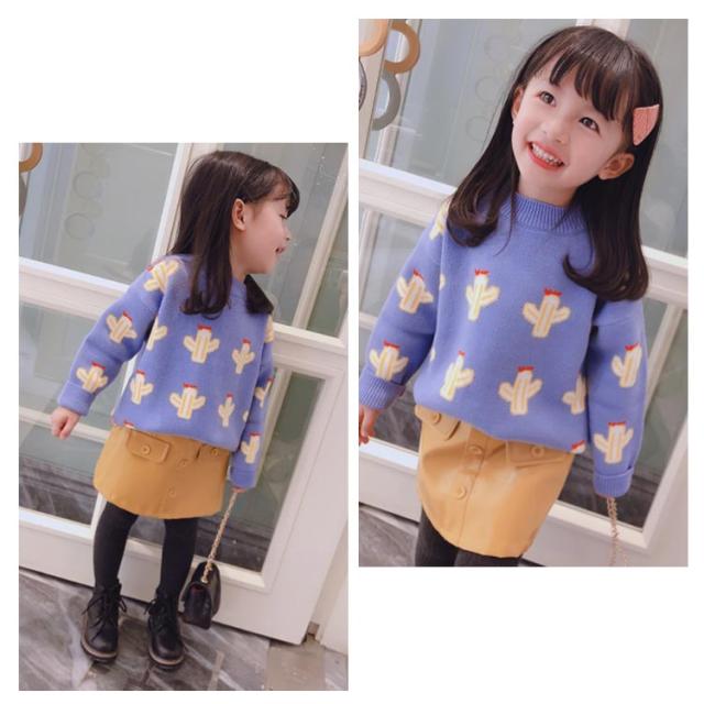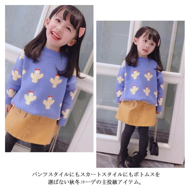 | 女の子が可愛いサボテン柄ニットセーター。 キレイな色合いが元気なお子様を映える。 ゆったりビッグシルエットが今年らしくお洒落。 パンツスタイルにもスカートスタイルにもボトムスを選ばない秋冬コーデの主役級アイテム。 | |