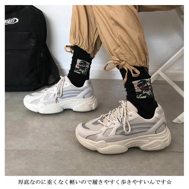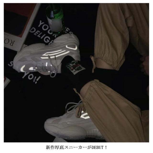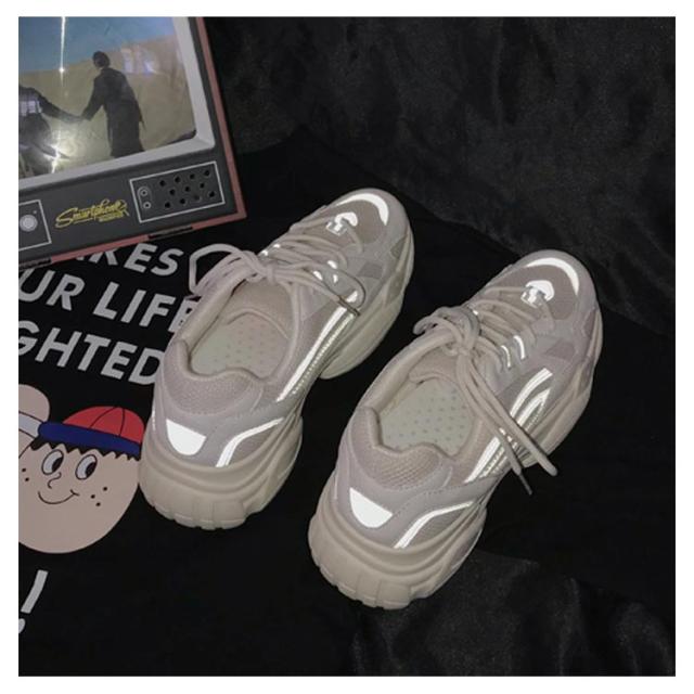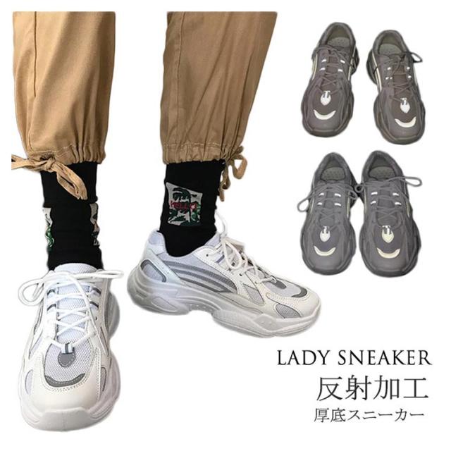 反射加工 スニーカー 厚底 スニーカー レースアップ スニーカー ストリート系 厚底スニーカー レディース 厚底靴 美脚 スニーカー 原宿系 ローカット レースアップ 厚底 シューズ 靴
