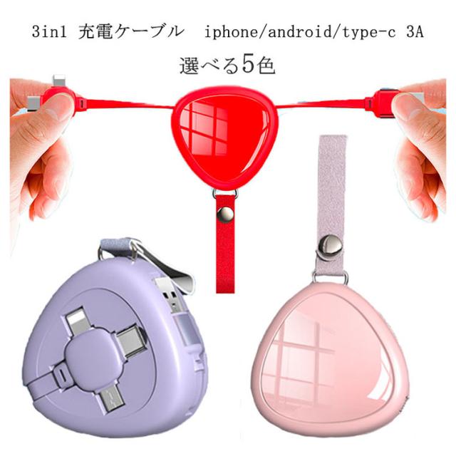 ル/Micro/Type 3a急速充電 USB XS アイフォン充電ケーブル ライトニングケーブル iPhone iphone充電器 タイプC 13/13mini/promax Type-c USBケーブル 充電ケーブル c 巻取り充電 Android アンドロイド microUSB ケーブルiPhone MAX 8 7 Lightning 巻き取り