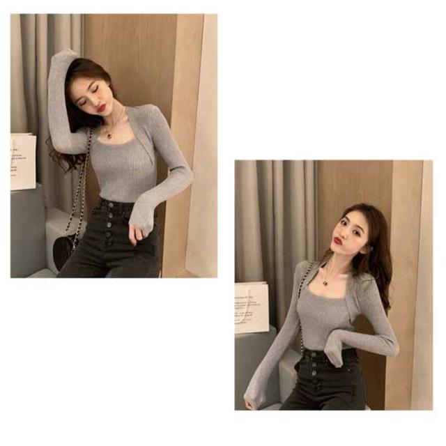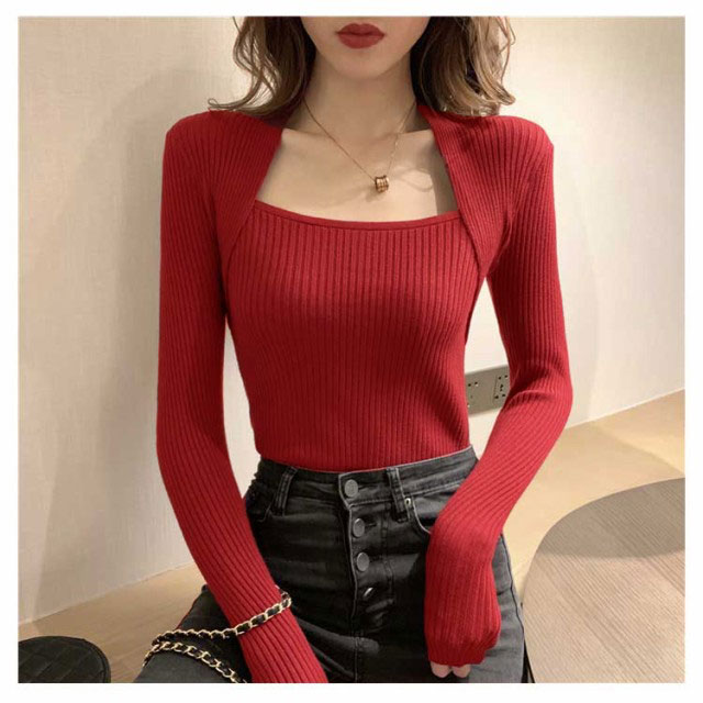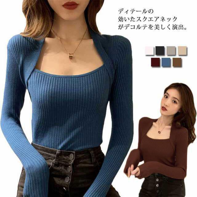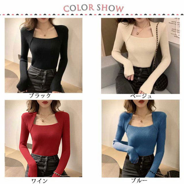 全7色!スクエアネックリブニット リブニット トップス レディース 長袖 スクエアネック ニット カットソー トップス きれいめ オフィス カジュアル シンプル 上品 着痩せ 無地