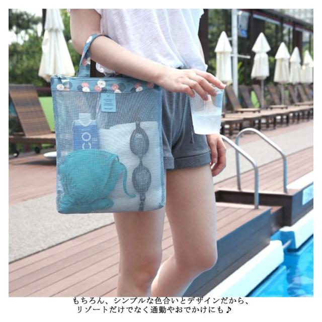 ビーチグッズ メッシュバッグ メッシュバッグ レディース プールバッグ 花柄 スイムバッグ 海 おしゃれ 軽量 ビーチバッグ