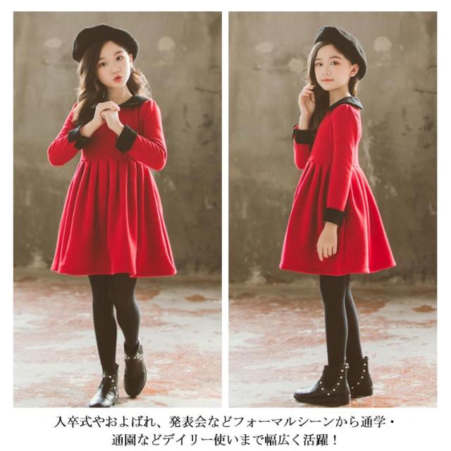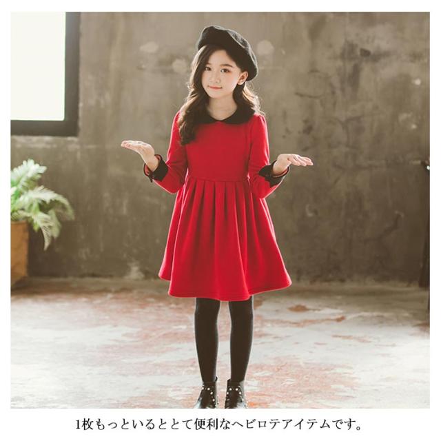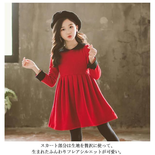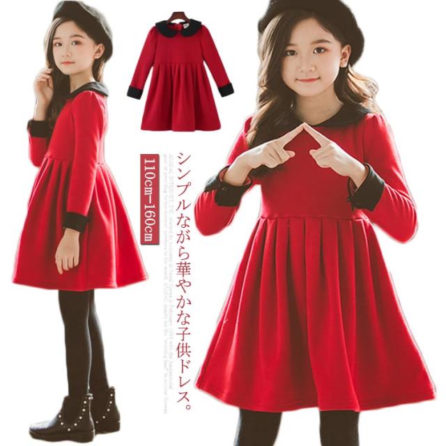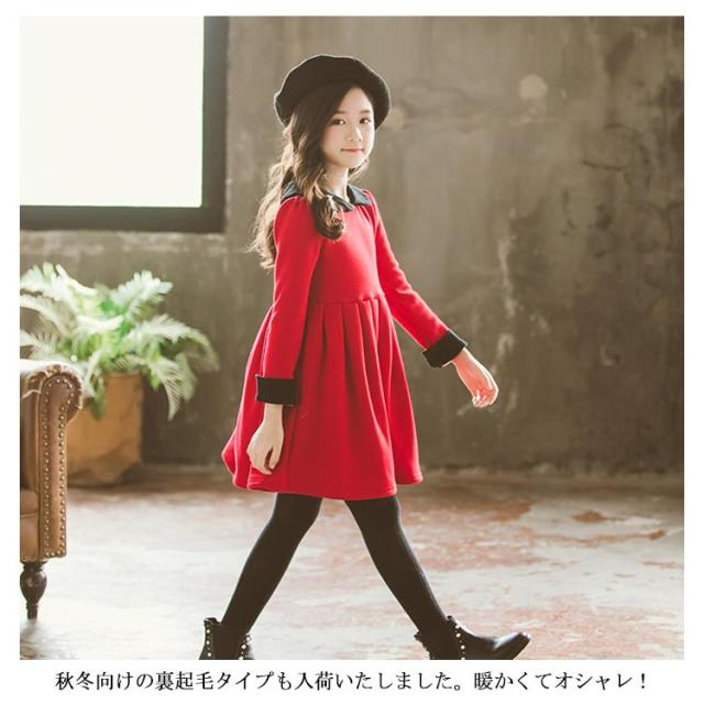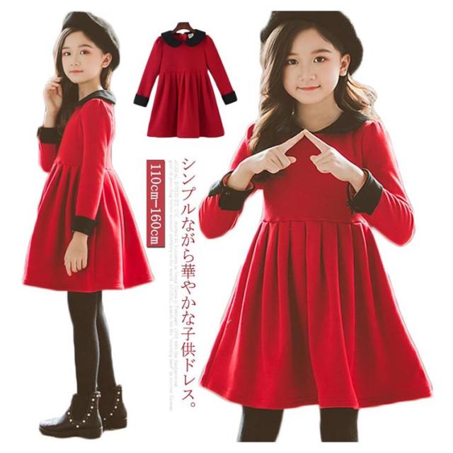子供服 長袖ワンピース 丸襟 可愛い ドレス バイカラー ワンピース 薄手 暖かい 裏起毛 春秋 冬 姫系 Aライン フレア ワンピース 裏ボア フォーマル お姫様 ドレス プリンセス 結婚式 およばれ 発表会 コンクール 入学式 卒業式