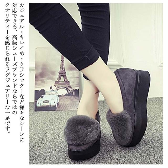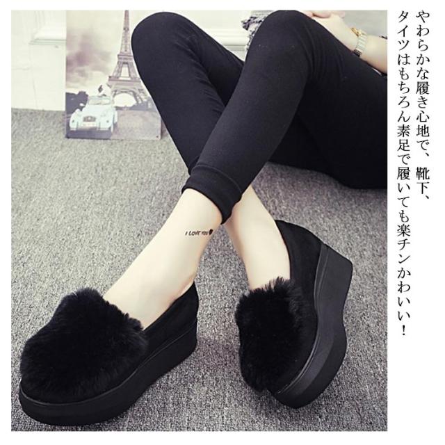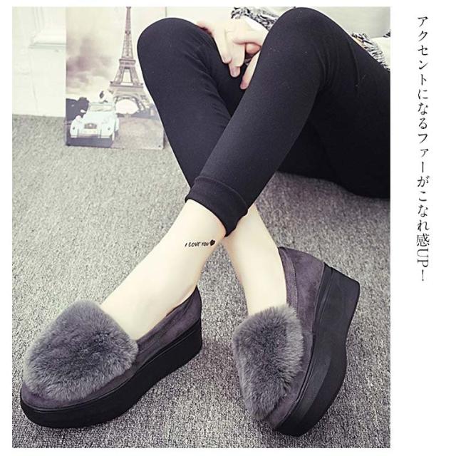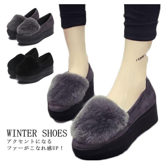 厚底 シューズ パンプス 裏ボア シューズ あったか モカシン シューズ レディース ローファー シューズ もこもこ フェイクファー ファー ボアシューズ スリッポン シューズ ファー シューズ フラットシューズ 美脚 秋冬