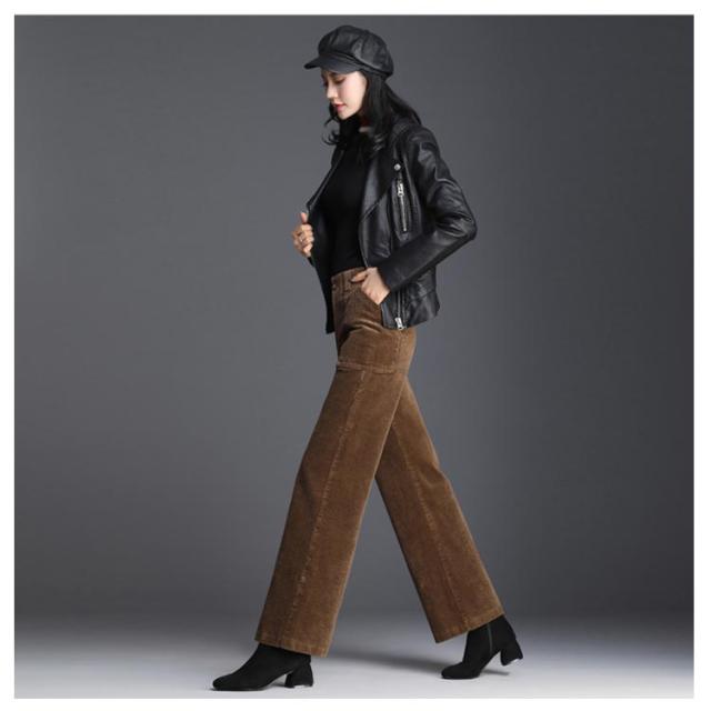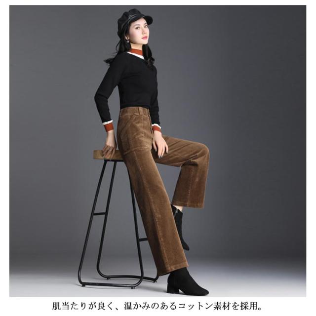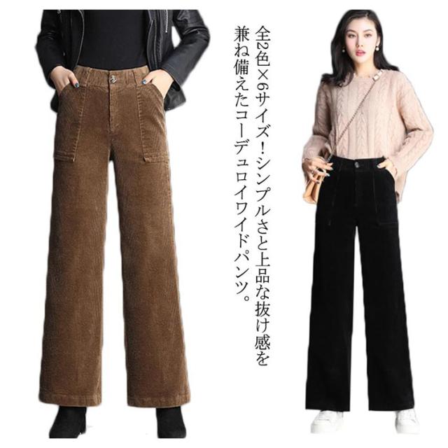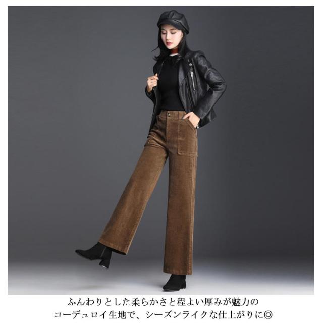 全2色×6サイズ!コーデュロイワイドパンツ レディース ロングパンツ ワイドパンツ コーデュロイパンツ ハイウエスト ワイドシルエット 長ズボン 秋冬 無地 キレイめ カジュアル