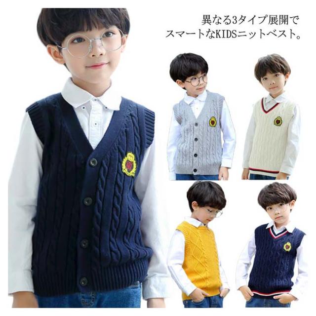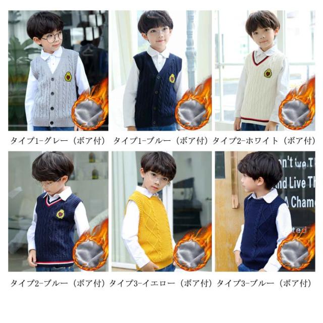 【3タイプ】ニットベスト Vネック 男の子 子供服 ベスト ケープルニット キッズ服 裏起毛 トップス 秋冬物 あったか お洒落 入学式 入園式 卒業式 100cm 110cm 120cm 130cm 140cm 150cm送料無料