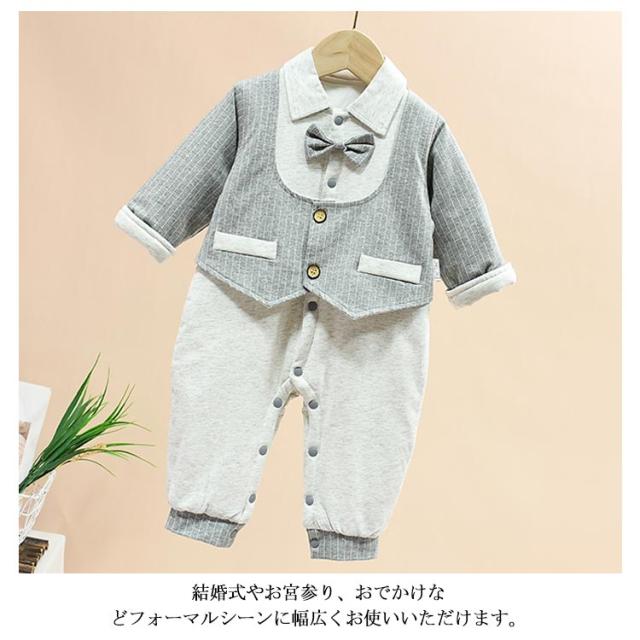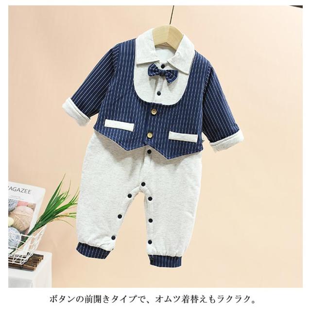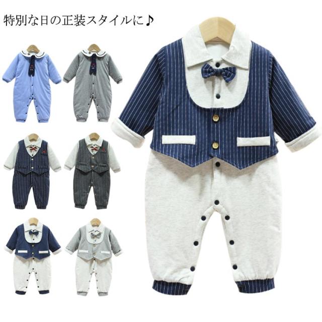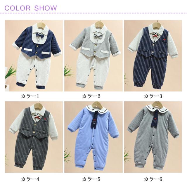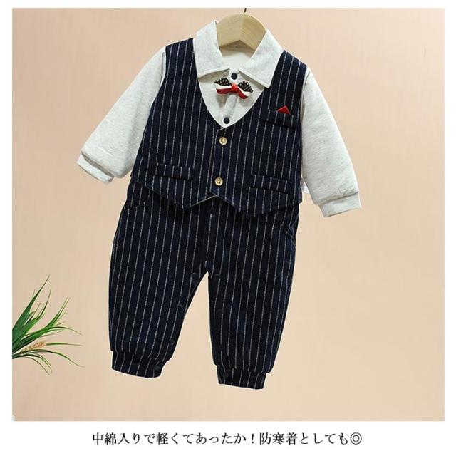 ベビー服 ベビー フォーマル スーツ 男の子 新生児 ロンパース 長袖 中綿入り 秋冬 厚手 防寒 カバーオール 赤ちゃん 蝶ネクタイ 紳士風 猫 初節句 出産祝い お宮参り 結婚式 ボディースーツ セレモニー 七五三 記念日 3ヶ月 6ヶ月 1歳