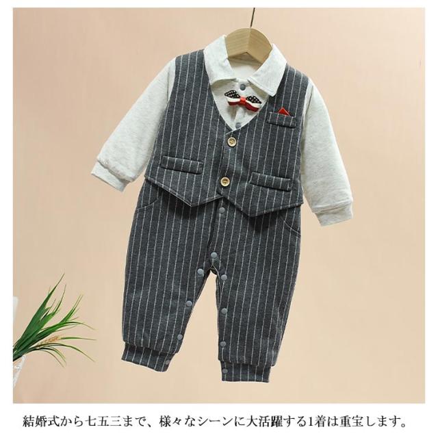 | 特別な日の正装スタイルに♪ 格好良くお洒落なベビーセレモニースーツ、パパ ママ おばあちゃんもメロメロ♪ 結婚式から七五三まで、様々なシーンに大活躍する1着は重宝します。 中綿入りで軽くてあったか!防寒着としても◎ お肌に触る部分はコットン生地で、着心地も快適♪ ボタンの前開きタイプで、オムツ着替えもラクラク。 結婚式やお宮参り、おでかけなどフォーマルシーンに幅広くお使いいただけます。 | |