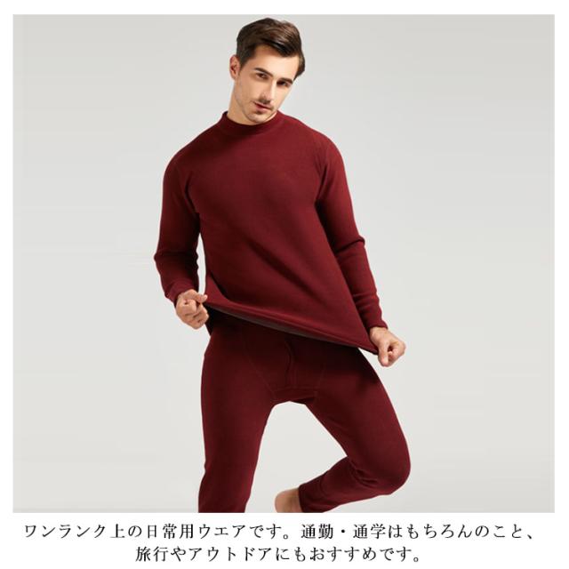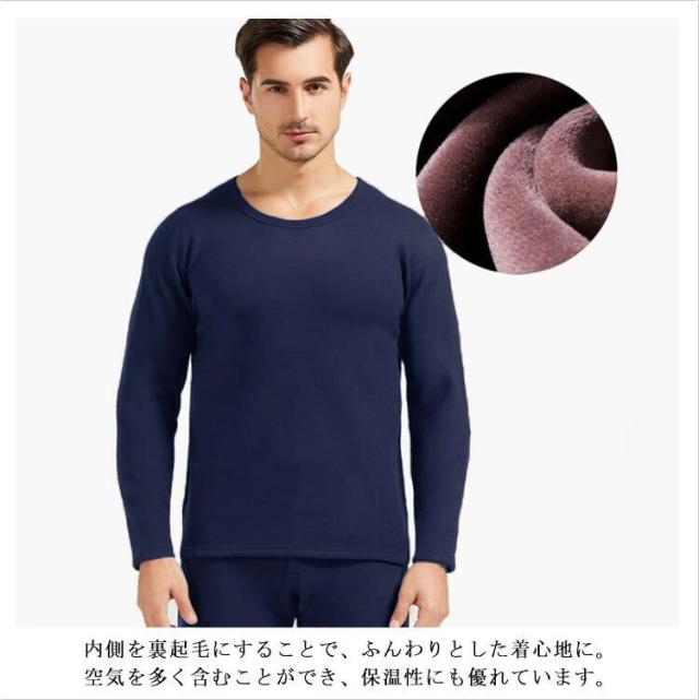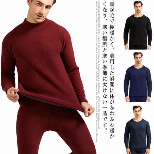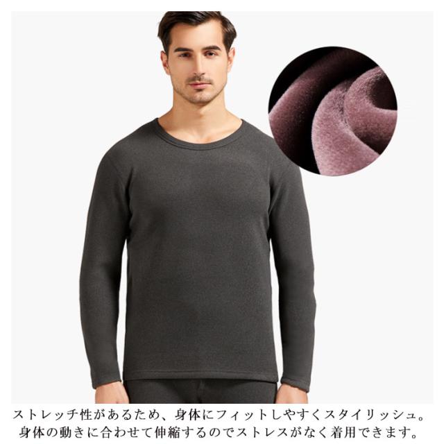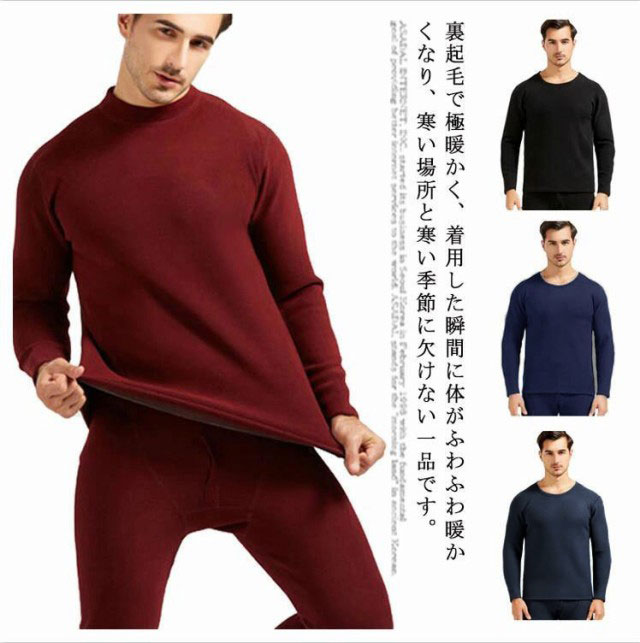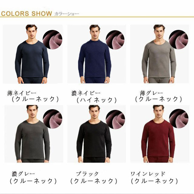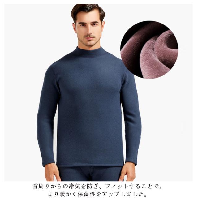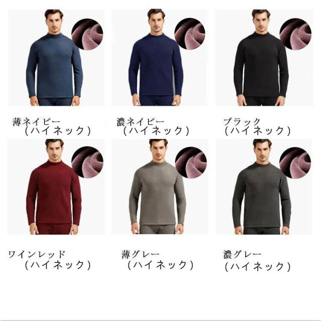 【送料無料】ヒートテック メンズ 上下セット 裏起毛 厚手 肌着 ロンt 長袖 カシミヤタッチ インナー ストレッチ 発熱 アンダーシャツ 保温 防寒 ラウンドネック ボトルネック 春 秋冬 黒 ブラック グレー ネイビー 紺