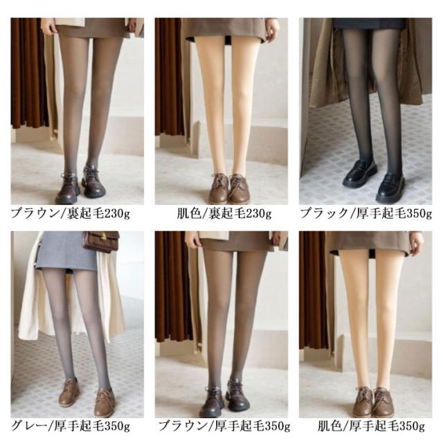 | 選べる2タイプ、熱を逃がさない暖かな裏起毛タイツ。 薄手・230g裏起毛・350g厚手起毛の3種類で、秋から春先までお使いいただけます。 タイツの内側が肌色になっているので履いた時に透けて見えるようになっております。 体へのフィット感がバッチリ、スッキリとしたレッグラインを見せてくれます。 柔らかくなめらかな肌触りで温かく、透け感により重たくならず寒い冬のおしゃれに活躍します。 | |