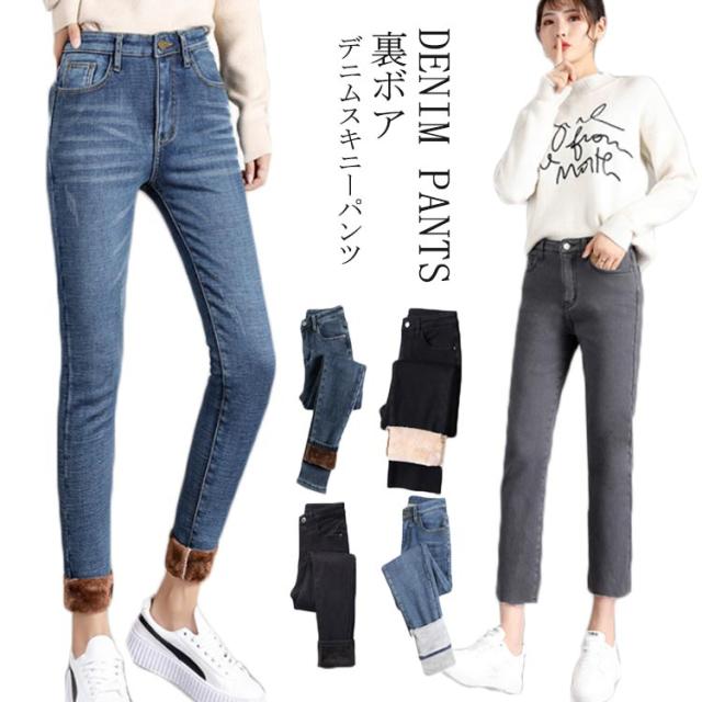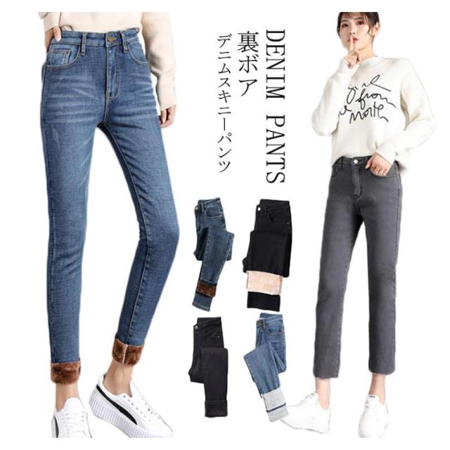 デニム スキニーパンツ 裏ボア デニムパンツ レディース ジーンズ ジーパン ストレッチ パンツ 裏ボア パンツ スキニー パンツ スキニー デニム パンツ ロングパンツ デニム 秋冬