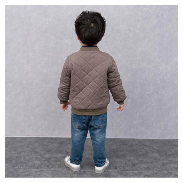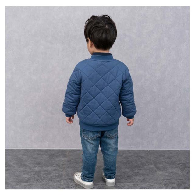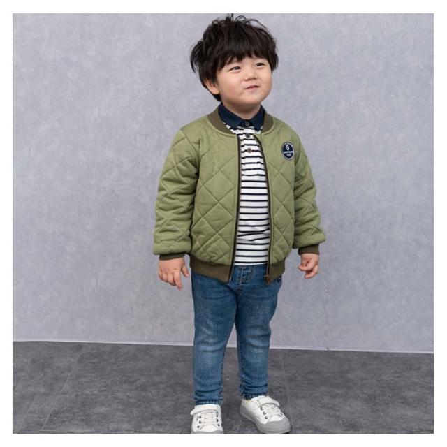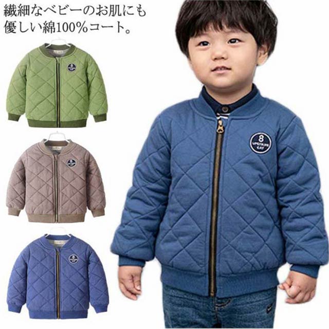 | 繊細なベビーのお肌にも優しい綿100%コート。 肌に触るところは全て柔らかいコットン生地で、中には中綿入り、肌触り優しく暖かい。 今季大人気のフライトジャケットのようなデザイン、お子様がかっこよくてメロメロ♪ キルティングデザインで、袖通しがやすくて、小さな子でも自分で着脱ぎ楽チン!通園・通園にはとても便利です。 | |