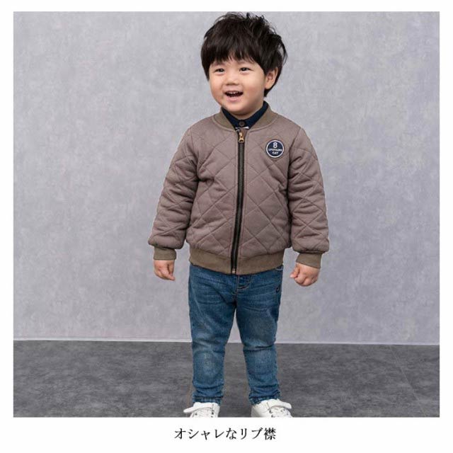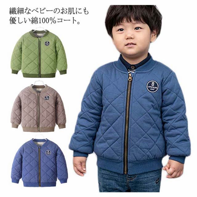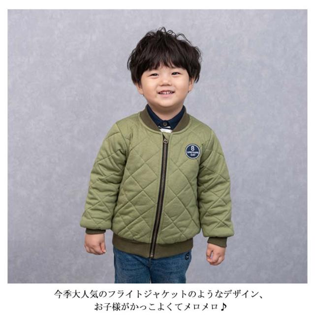 キルティングコート 中綿ジャケット ベビー キッズ 子供服 フライトジャケット ブルゾン ジャケット リブ襟 スタジャン アウター 男の子 ベビー服 インナー コート 上着 ジャンパー 子ども キッズ 保育園 幼稚園 小学生 秋冬 80cm 90cm 100cm 110cm 120cm 130cm