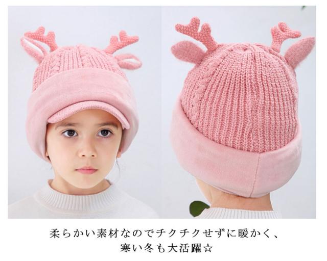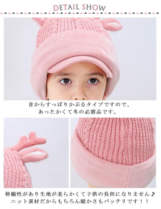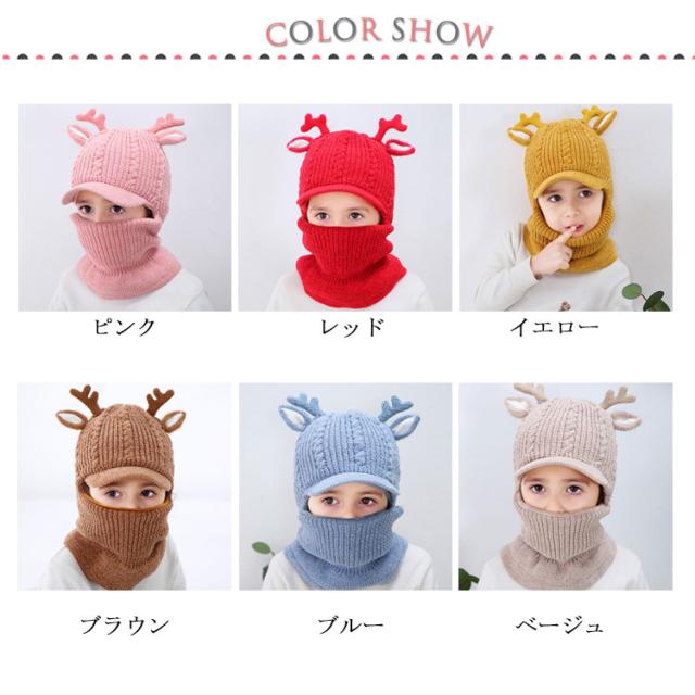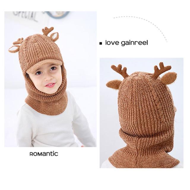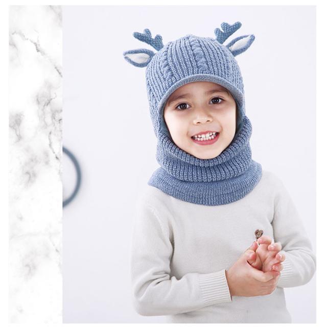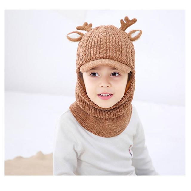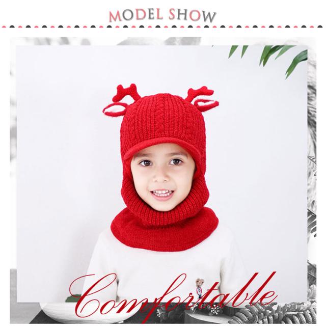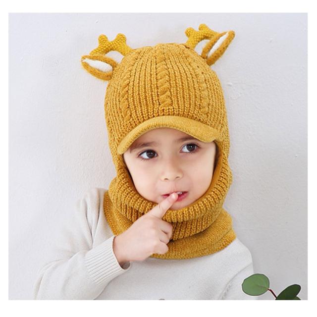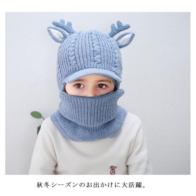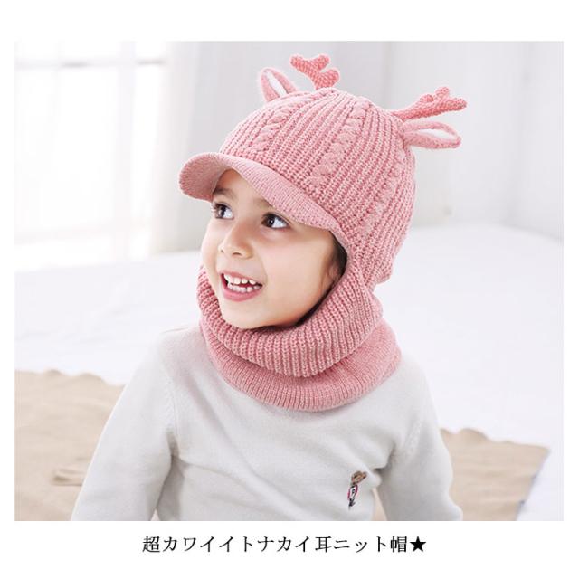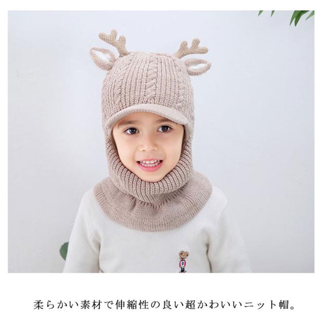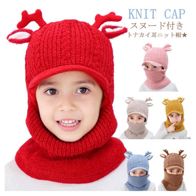 スヌード付き ニット帽子 トナカイ耳 ベビー キッズ ニットキャップ シカ耳付き ニット 帽子 赤ちゃん ニット帽 子供帽子 キッズ帽子 キャップ 帽子 ニット帽 耳付き 帽子 アニマル 防寒 クリスマス 誕生日
