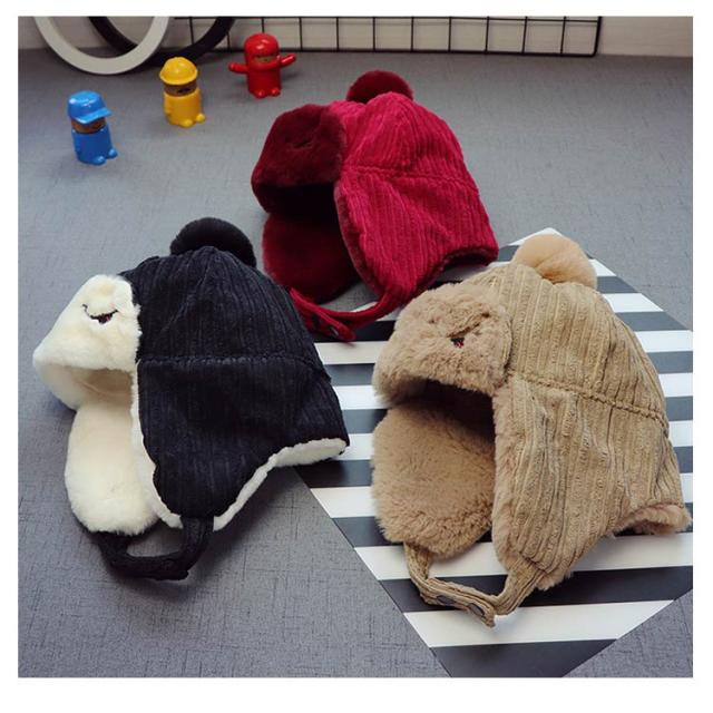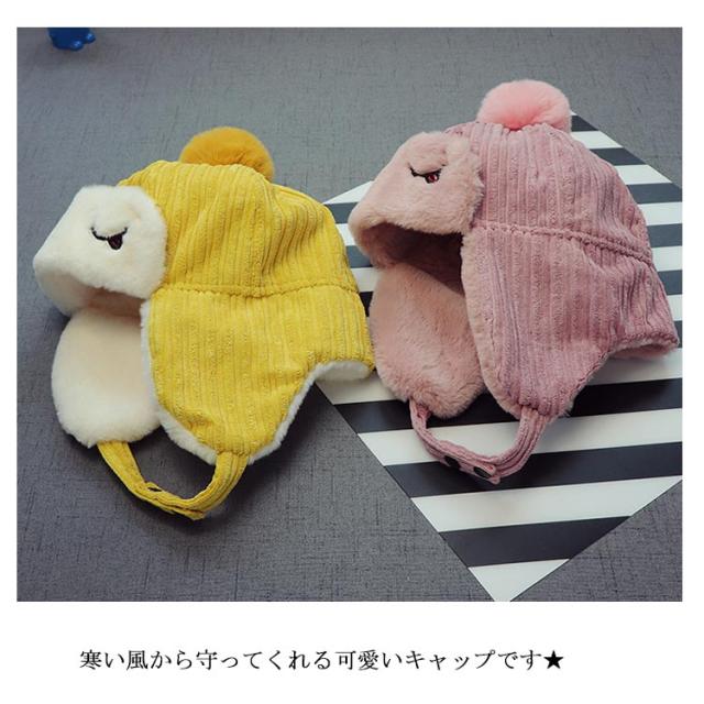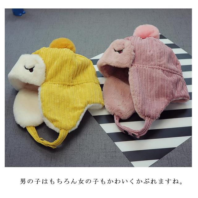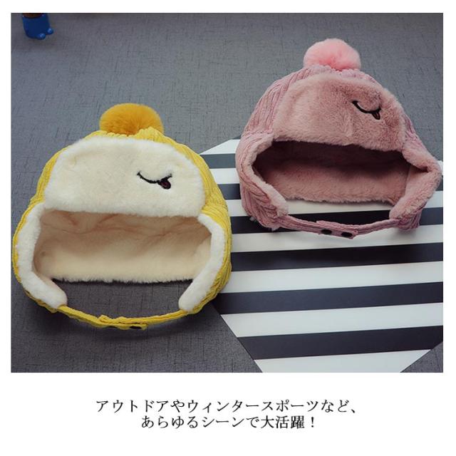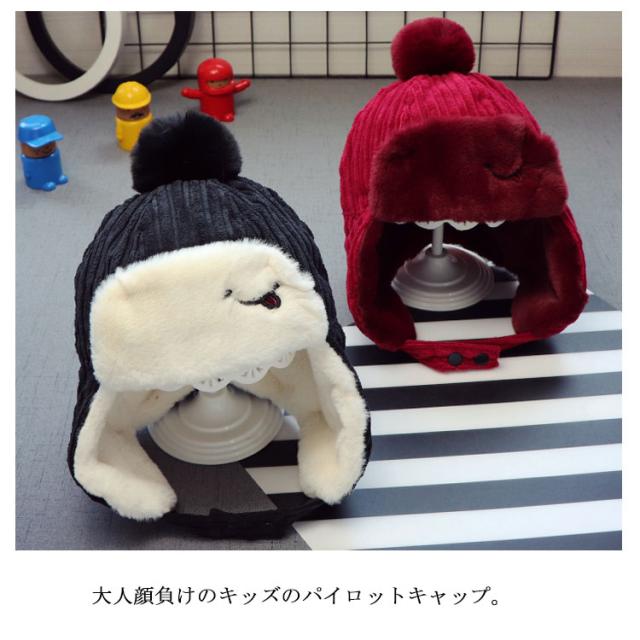フライトキャップ 帽子 コーデュロイ ボア キャップ キッズ ベビー 子供用 パイロットキャップ 耳あて付き キャップ ハット キャスケット 防寒 保温 冬用 暖かい キッズ用 ポンポン キャップ 幼稚園 秋冬 キャップ 帽子 お散歩