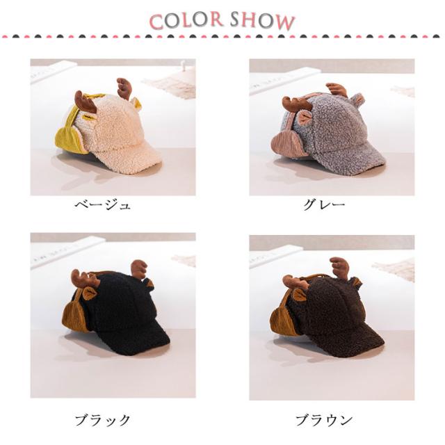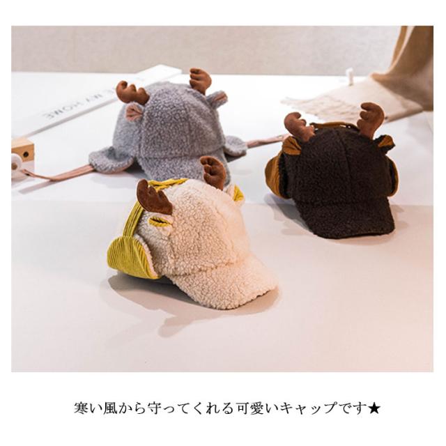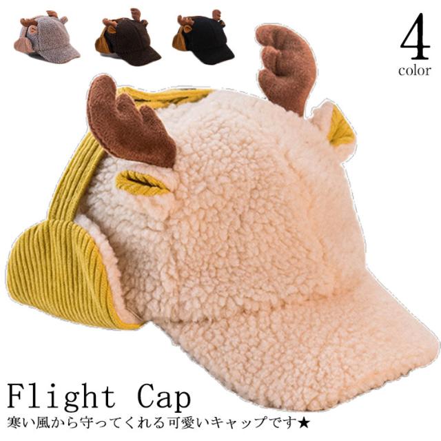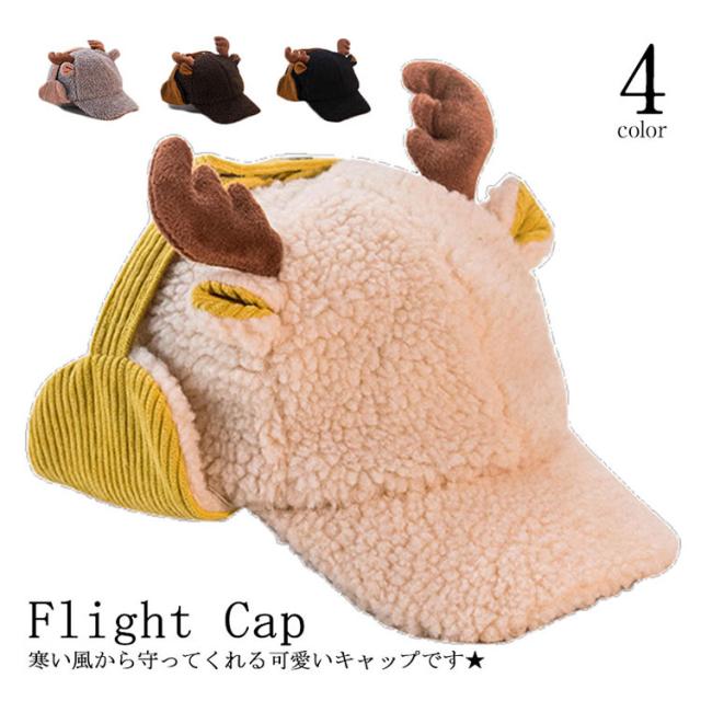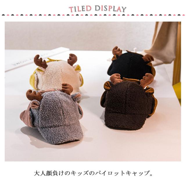 耳あて付き キャップ ハット トナカイ耳 パイロットキャップ フライトキャップ 帽子 ボア キャップ キッズ ベビー 子供用 キャスケット 防寒 保温 冬用 暖かい ポンポン キャップ 幼稚園 秋冬 キャップ 帽子 お散歩
