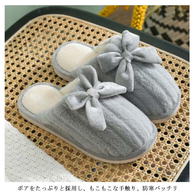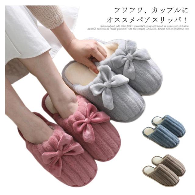 ペアスリッパ ルームシューズ もこもこ あったか レディース カップル メンズ スリッパ かわいい 北欧 滑り止め 秋冬 蝶結び 厚手 オシャレ 冷え防止 寒さ対策 暖かい 室内履き 屋内用 裏起毛 高級感 洗える 来客 プレゼント ギフト