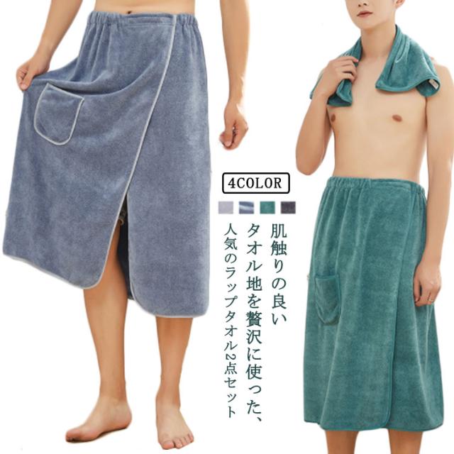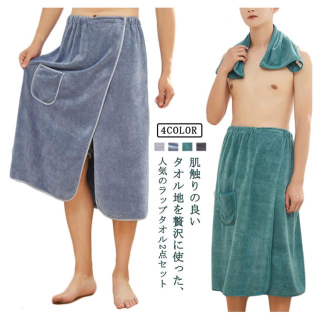 【送料無料】ラップタオル メンズ 大人用 巻きタオル フェイスタオル 2枚セット バスタオル バスローブ式 巻きタオル ルームウエア パジャマ バスワンピース 部屋着 速乾サンゴフリーズ プール アウトドア スイミングタオル オールシーズン