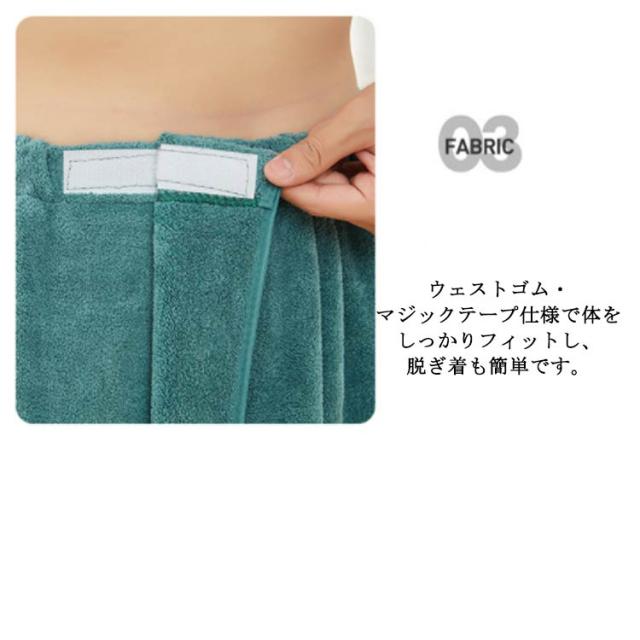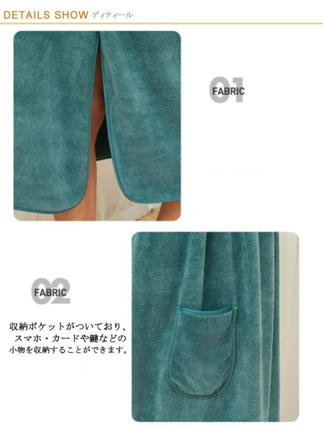 | 肌触りの良いタオル地を贅沢に使った、人気のラップタオル2点セット サンゴフリーズ素材を採用、ふわふわとした生地で、着心地が良く、吸水性、速乾性にも優れています。 速乾性もバツグン!プールやジムでの着替えやサウナなどへ持っていくのに便利です。 ウェストゴム・マジックテープ仕様で体をしっかりフィットし、脱ぎ着も簡単です。 収納ポケットがついており、スマホ・カードや鍵などの小物を収納することができます。 同色フェイスタオル付きで、濡れたヘアにも対応できます♪ | |