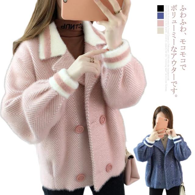 ブルゾン アウター レディース チェスターコート ショート丈 モコモコ 着痩せ ボリューム感 トップス 秋冬 冬物 お洒落 可愛い 厚手 キレイめ 送料無料