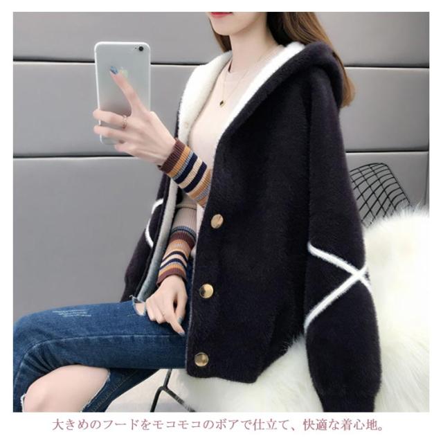 ブルゾン アウター レディース フード付き ジャケット ショート丈 モコモコ 着痩せ ゆったり トップス 秋冬 冬物 お洒落 可愛い 厚手 キレイめ 送料無料