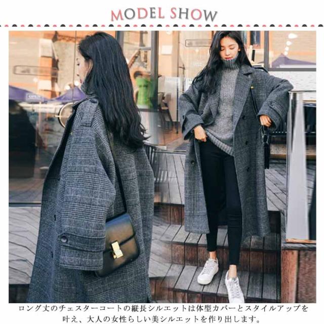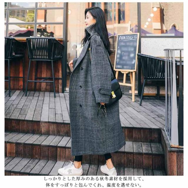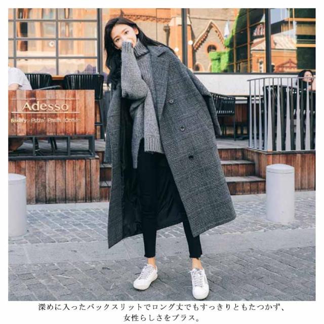 グレンチェック チェスターコート レディース ロングコート ロング丈 裹起毛 ジャケット アウター トレンチコート 上着 バックスリット 体型カバー オフィス 通勤 通学 秋冬 おしゃれ カジュアル