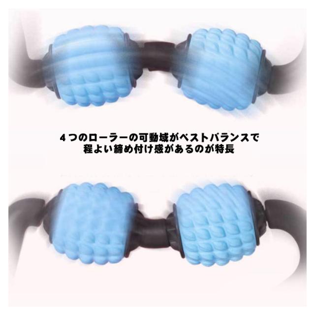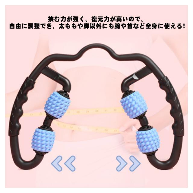 | 両側からローラーでマッサージ! 4つのローラーの可動域がベストバランスで程よい締め付け感があるのが特長。 ローラーの突起部分がほどよく刺激! 360度回転ローラーで疲れたところを挟んで360度均一にマッサージできます。 マッサージすることでを促すので、むくみやコリを解消し、筋肉疲労などを軽減。 挟む力が強く、復元力が高いので、自由に調整でき、太ももや脚以外にも腕や首など全身に使える! | |