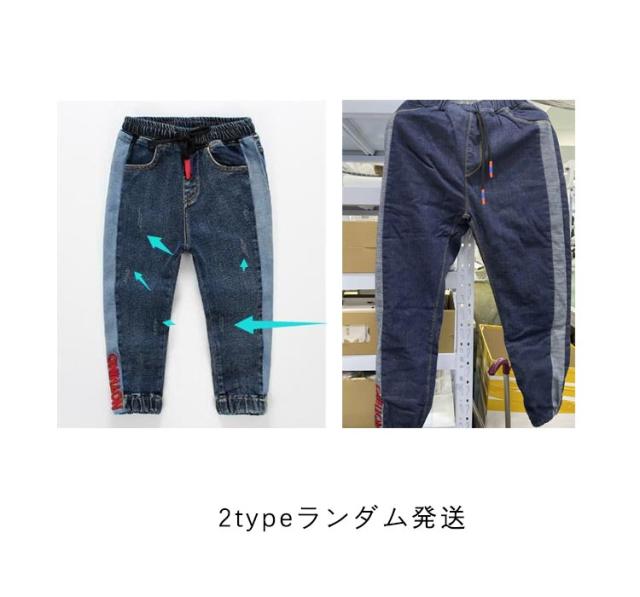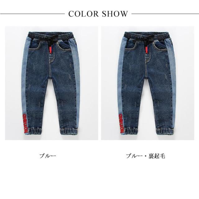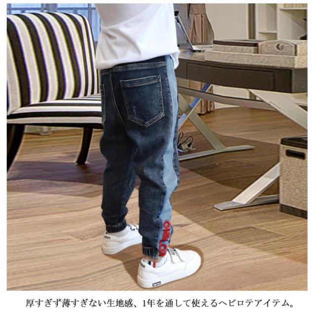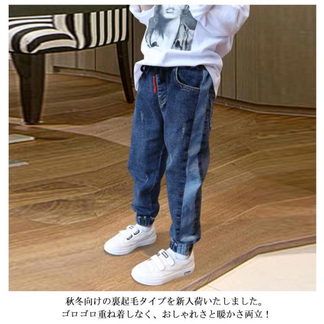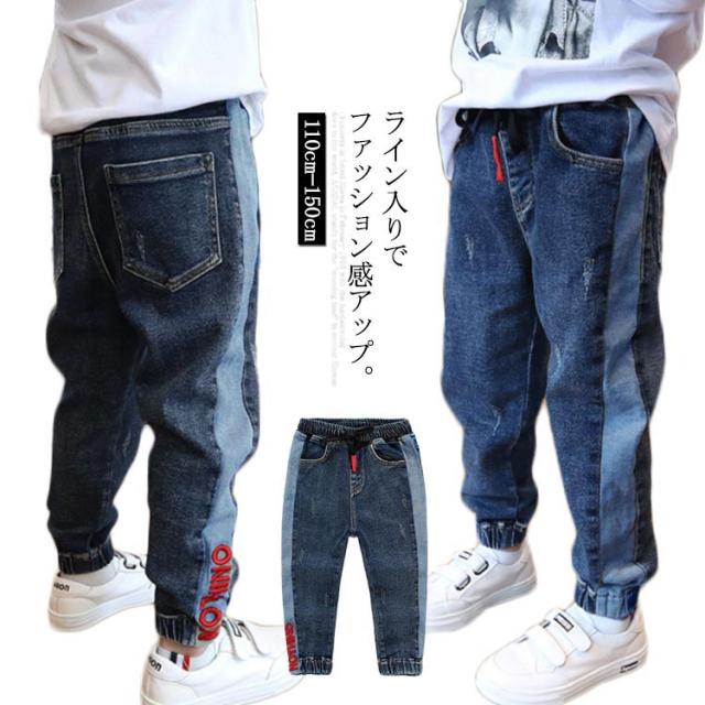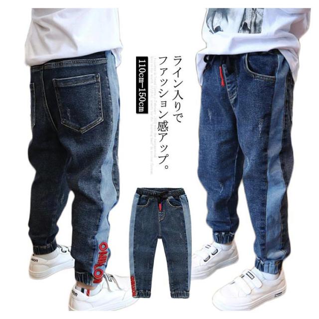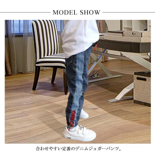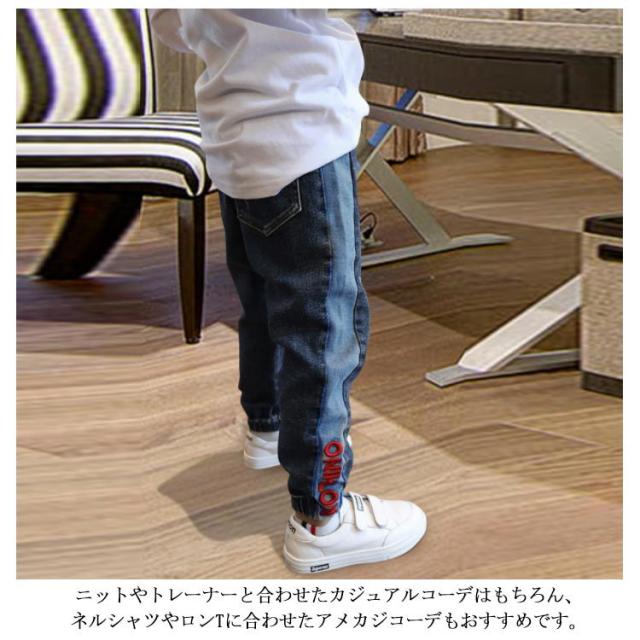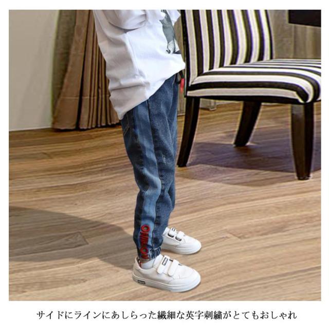 デニムパンツ 子供パンツ キッズ ジュニア デニム ロングパンツ ジョガーパンツ ジーンズ 長ズボン ライン入り 刺繍 男の子 子供服 裏起毛 パンツ ボトムス ウォッシュ加工 ユーズド アメカジ ストリート ボーイズ 秋冬 春
