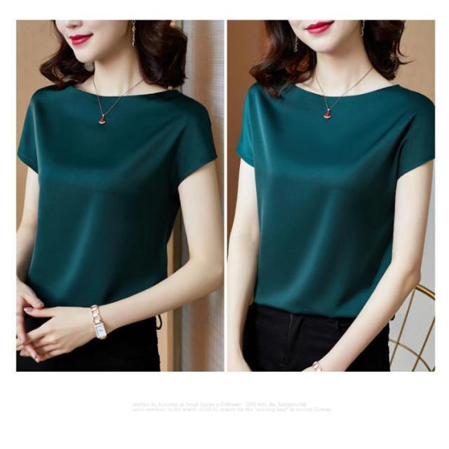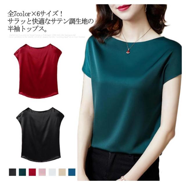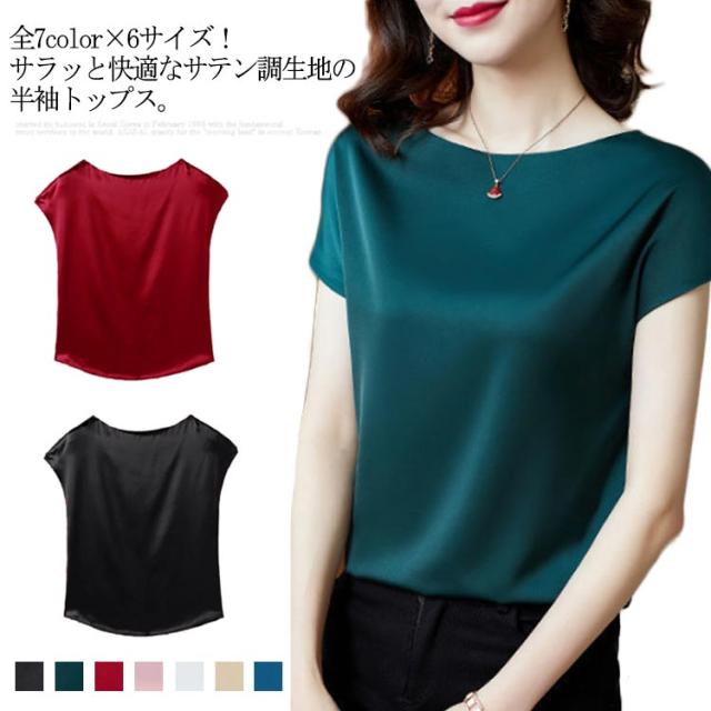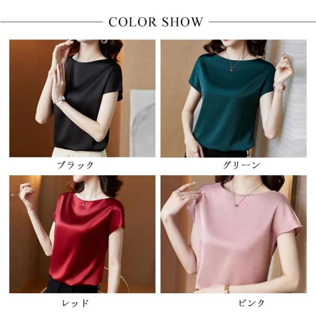 全7color選べる!tシャツ ブラウス レディース 半袖tシャツ 送料無料 Uネック 光沢感 サテン調 シルクタッチ トップス 半袖 シンプル 無地 夏 夏服 夏物 大きサイズ M L XL 2XL 3XL 4XL 無地 オフィス