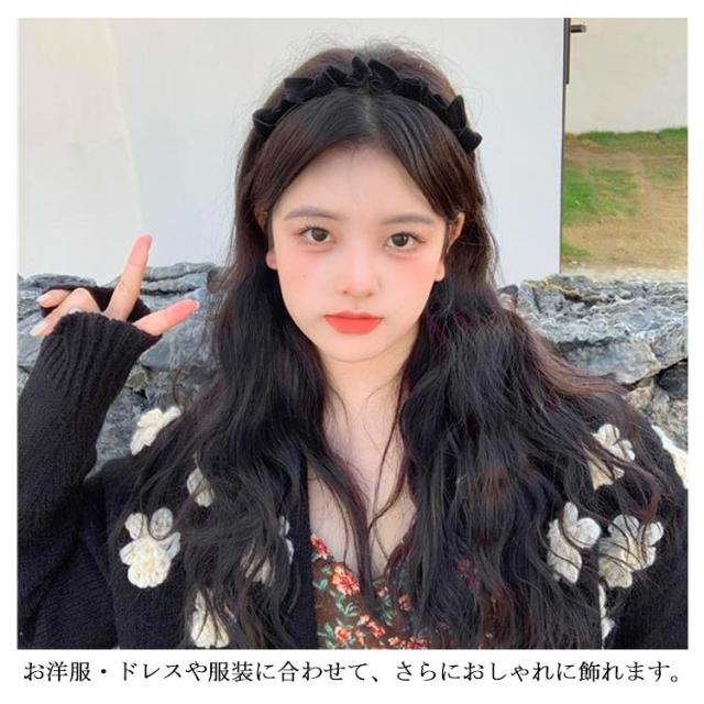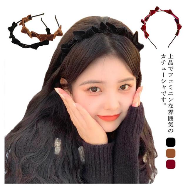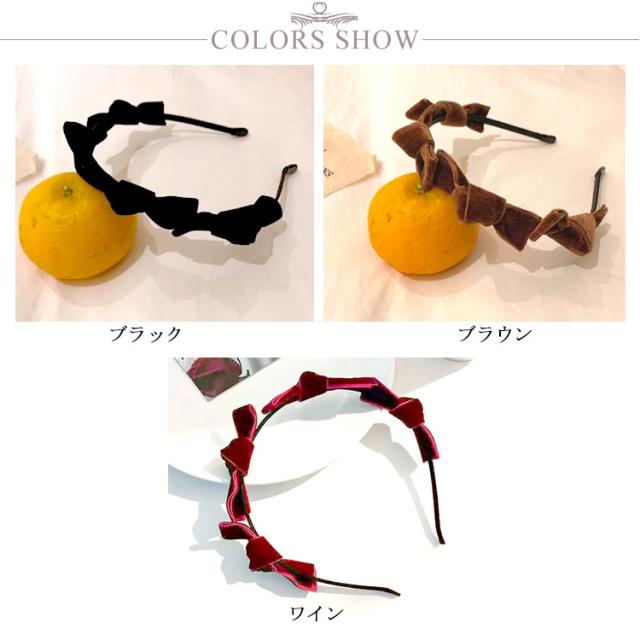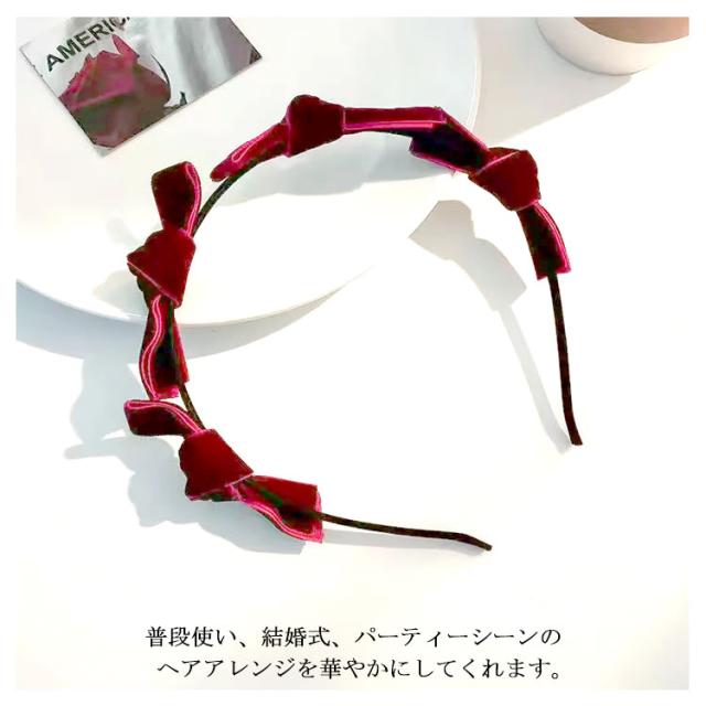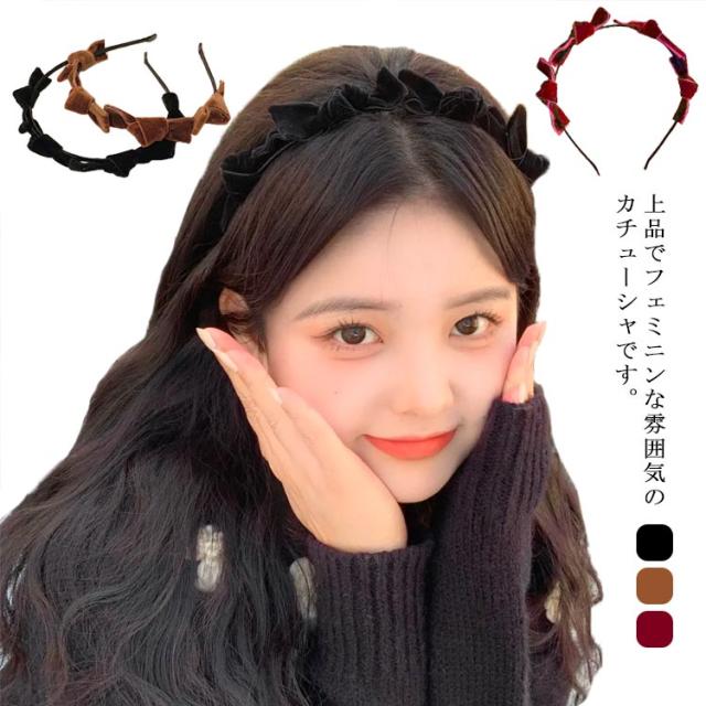 カチューシャ ワイン ヘアバンド 細い 結婚式 かわいい 大人っぽい パーティー シンプル ヘッドアクセ 秋冬 レディース ヘアアクセサリー 上品 ヴィンテージ風 黒 ブラック ブラウン リボン