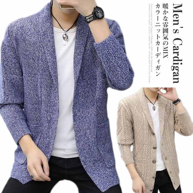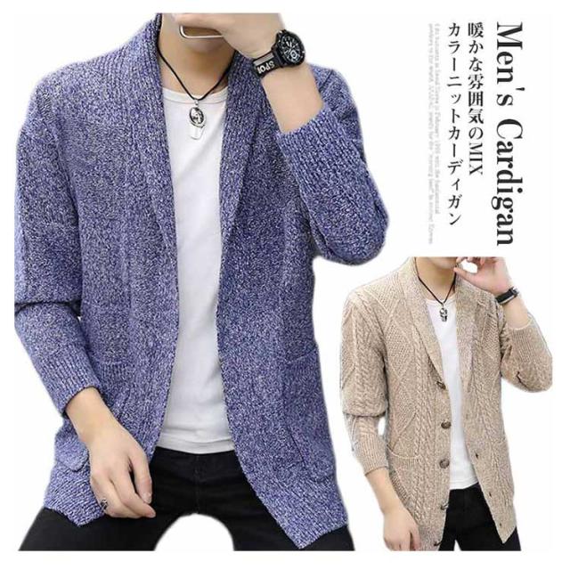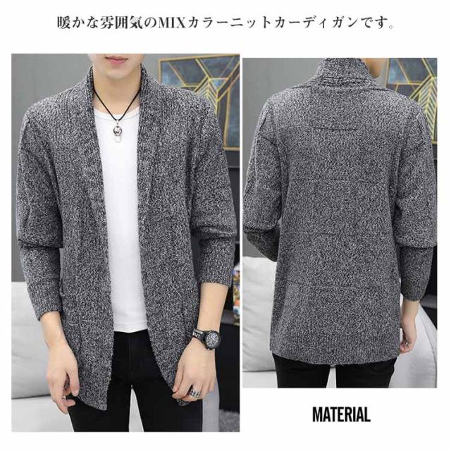 霜降り ショールカラー カーディガン メンズ ニットカーディガン MIXカラー トッパーカーディガン ショール カーディガン ショート カーディガン カーデ ショールカラー 冬物 防寒 秋冬