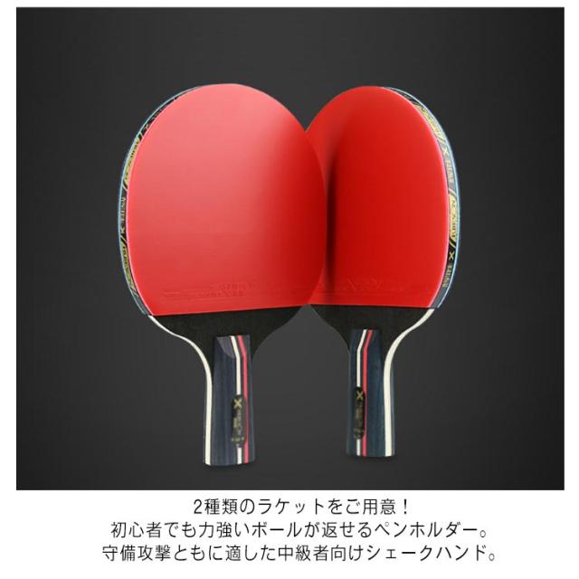 | (セット内容:ラケット×2個・ボール×3個・収納ケース×1個)初級者でもコントロールしやすい入門用卓球ラケット。 優れた安定性のために7層の木で作られています。 超強力な接着剤を使用した、環境に優しいナチュラルラバーで、ラケットは長く使用でき、ラバーが簡単に剥がれてしまうのではないかと 心配する必要はありません。 収納袋ケース付き、持ち運びにとても便利。 2種類のラケットをご用意!初心者でも力強いボールが返せるペンホルダー。守備攻撃ともに適した中級者向けシェークハンド。 | |