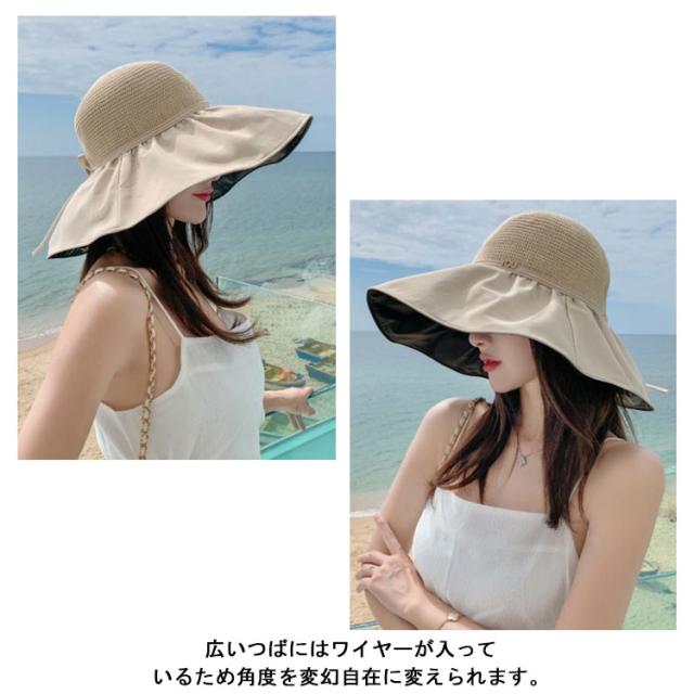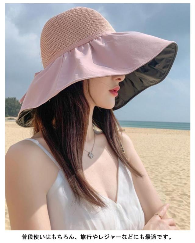帽子 レディース UVカット UV対策 ハット 麦わら帽子 つば広 日除け 日差し UV ケア 紫外線99%カット 紫外線対策 日焼け予防 大きいサイズ 春 夏 女性 帽子 小顔効果 折りたたみ 紐付き 飛ばない 自転車 バックリボン おしゃれ かわいい お出かけ 旅行 春 夏 春夏 送料無料