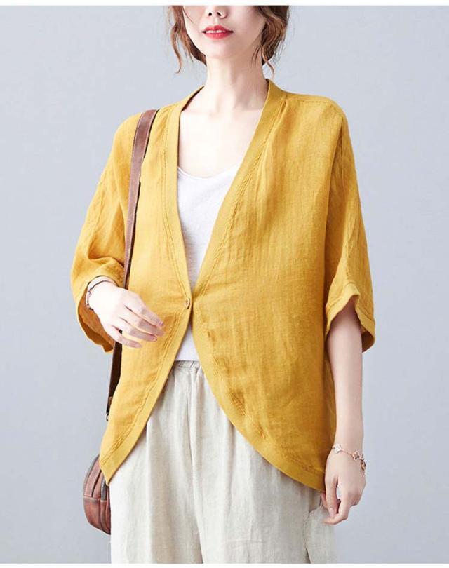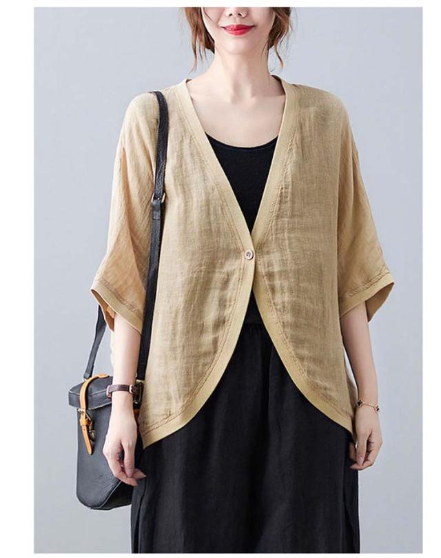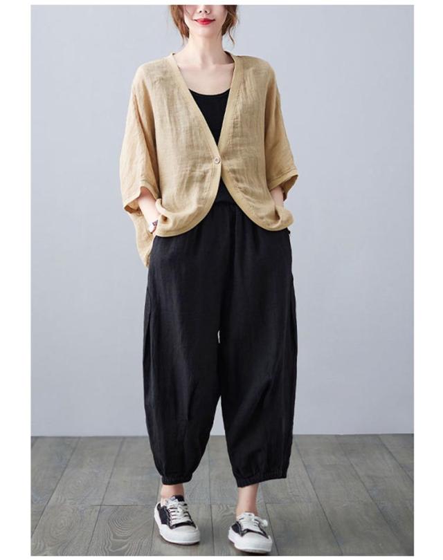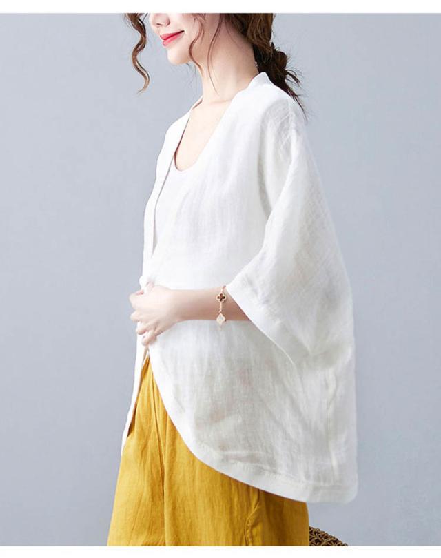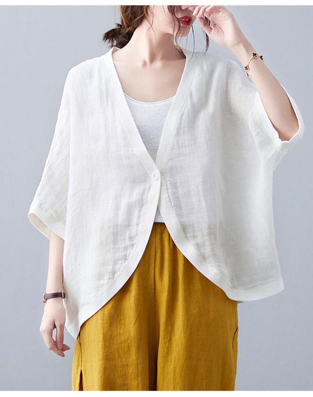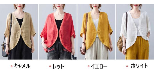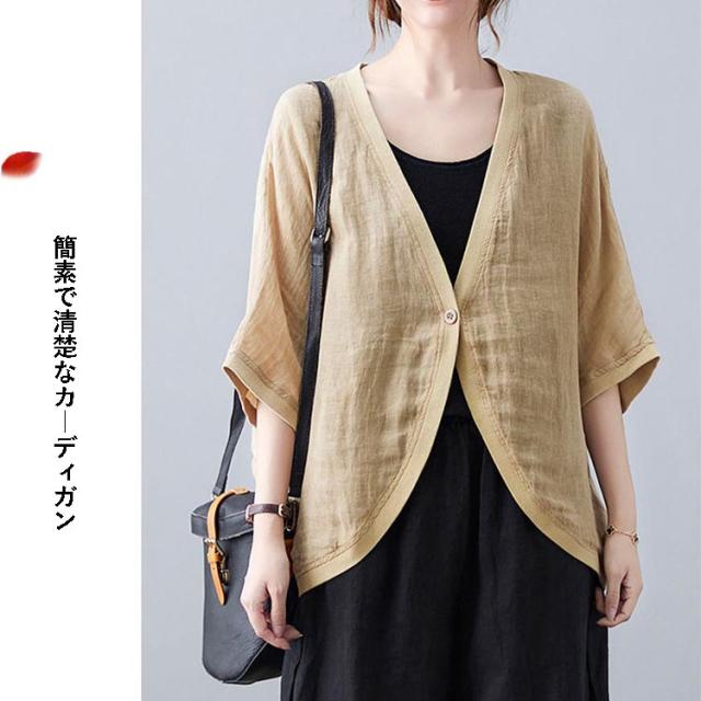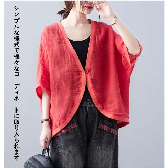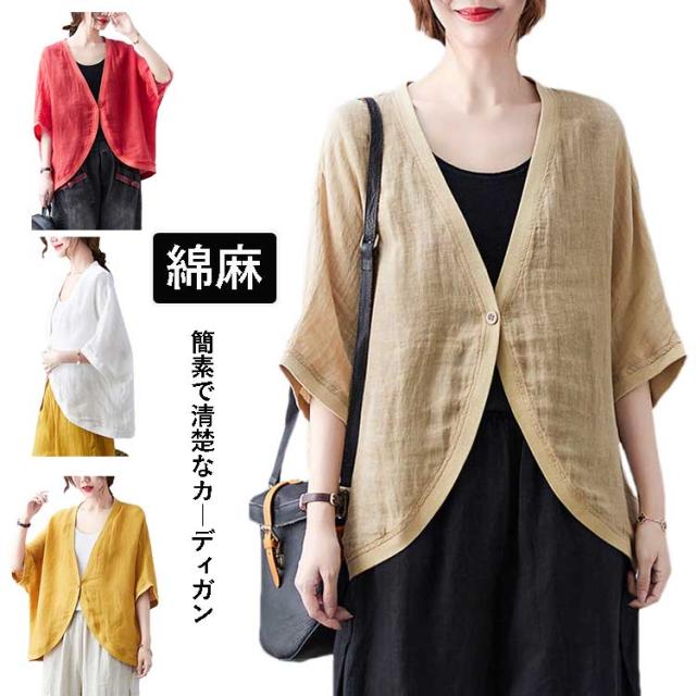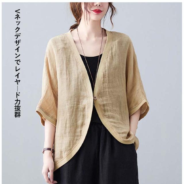 七分袖丈ショートボレロ ボレロカーディガン 薄手 カーディガン リネンカーディガン リネン カーディガン 送料無料 綿 麻 麻生地 Vネック 無地 冷房対策 カジュアル シンプル