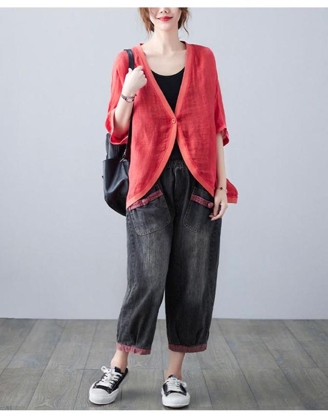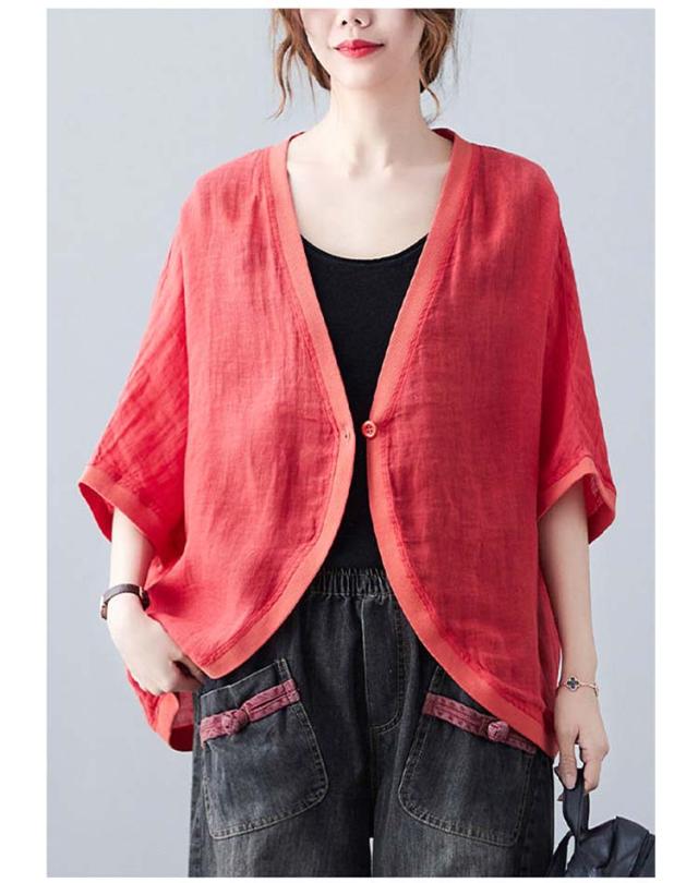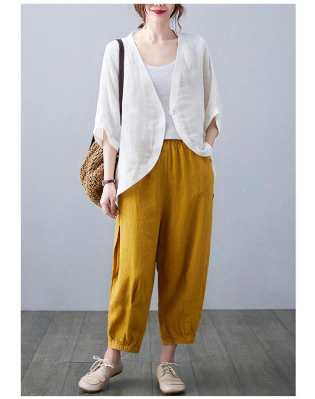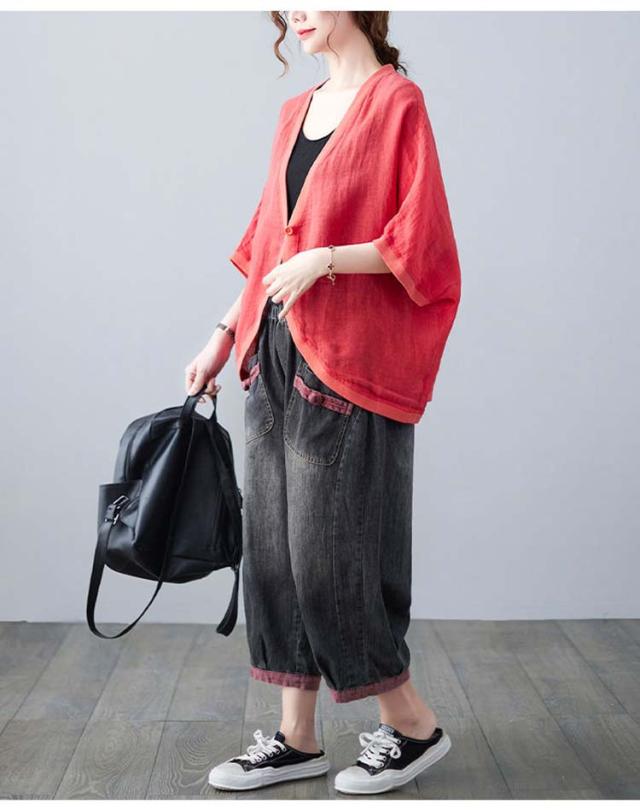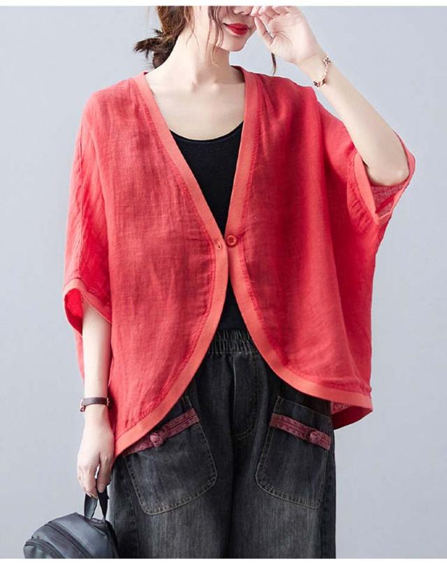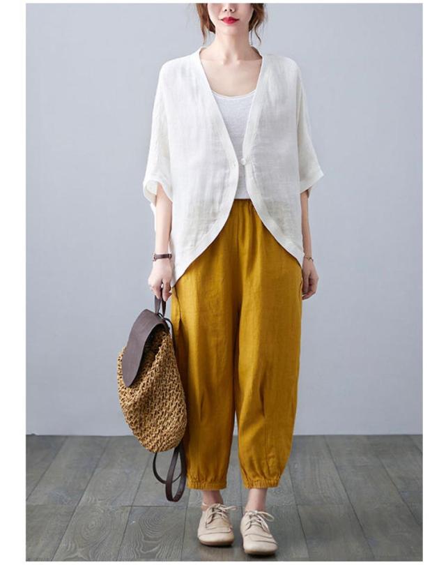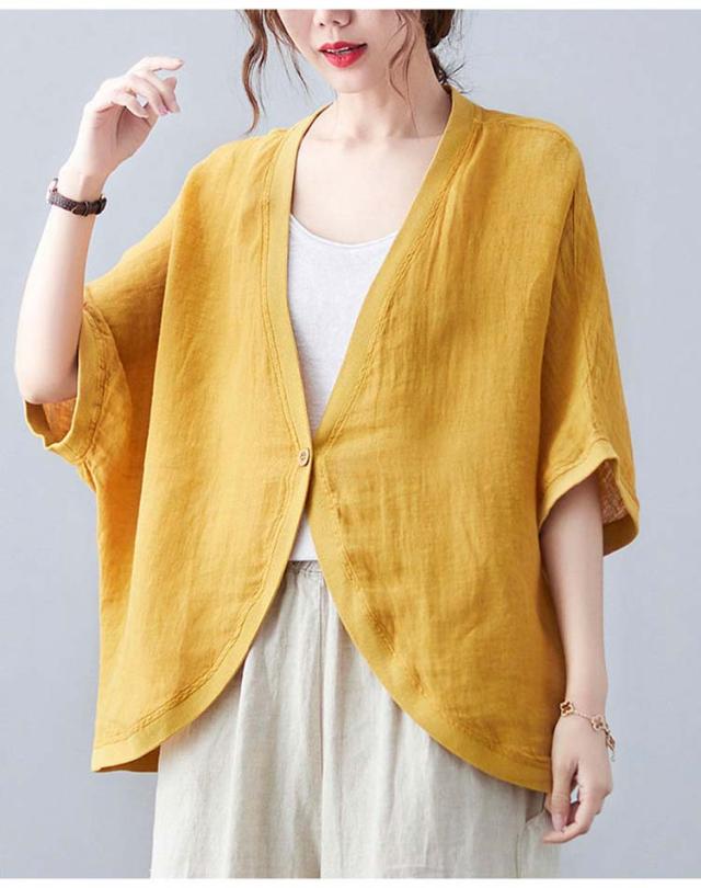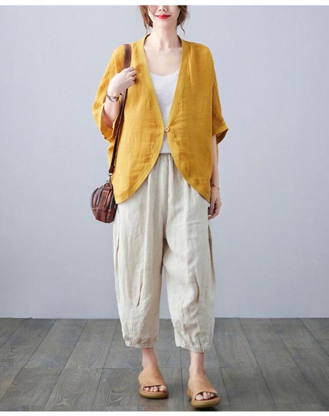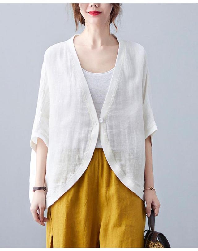 七分袖丈ショートボレロ ボレロカーディガン 薄手 カーディガン リネンカーディガン リネン カーディガン 送料無料 綿 麻 麻生地 Vネック 無地 冷房対策 カジュアル シンプル