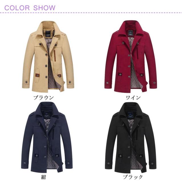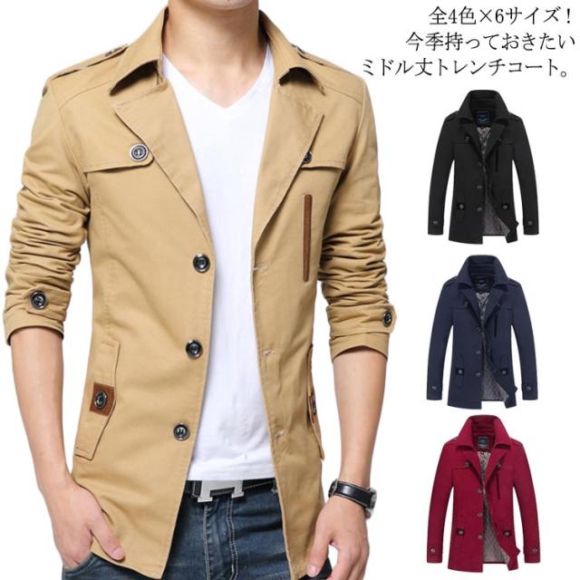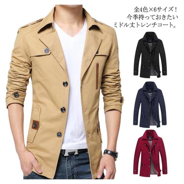 全4色×6サイズ!トレンチコート メンズ ハーフコート メンズコート トレンチ アウター コート ミドル丈 ビジネス カジュアル 春服 秋服 お洒落 大きサイズ