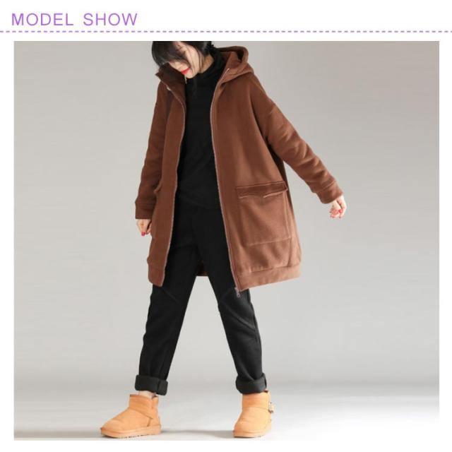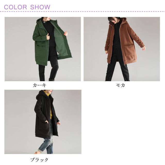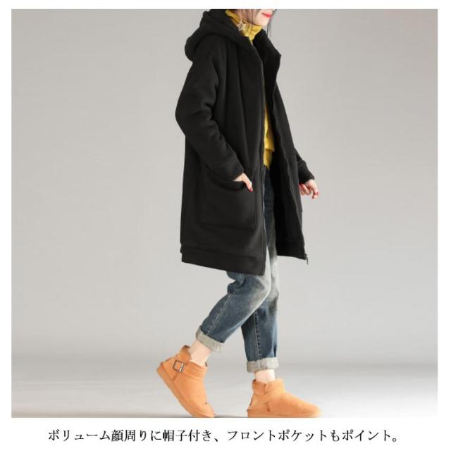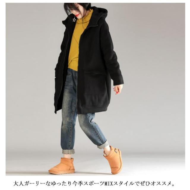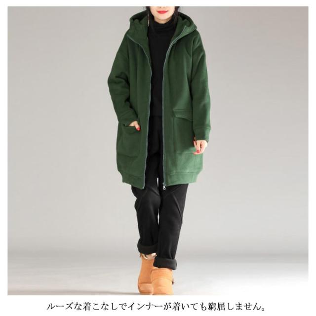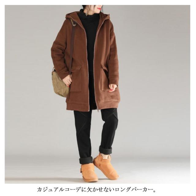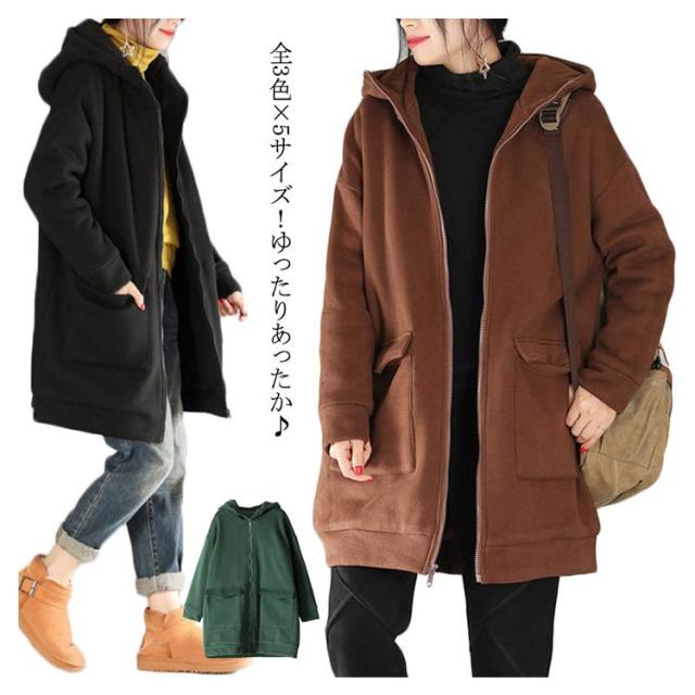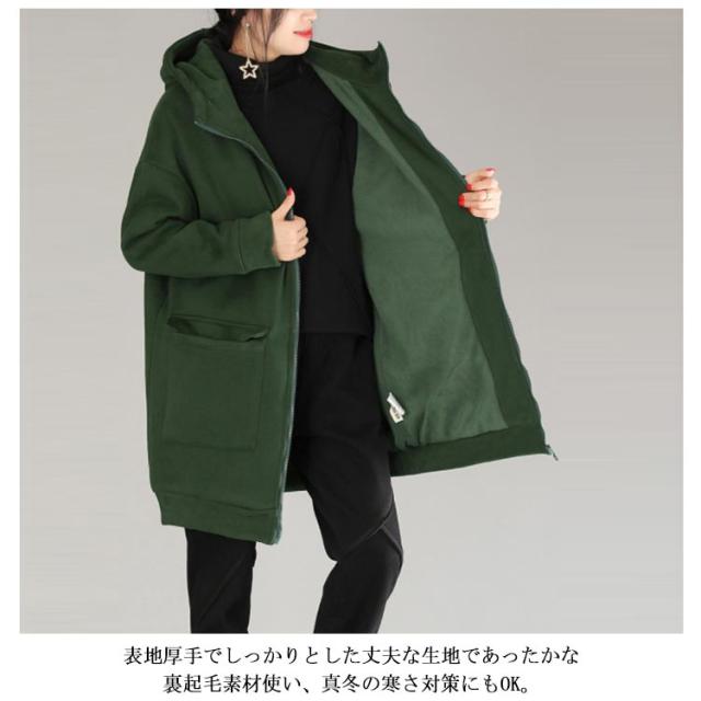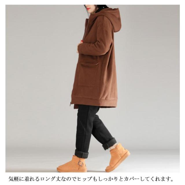全3色×5サイズ!裏起毛ロングパーカー パーカー レディース 裏起毛パーカー ロング丈 アウター コート ジップアップ 大きサイズ フード付き カジュアル 秋冬