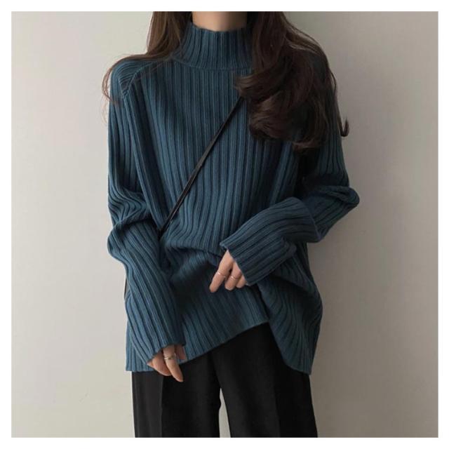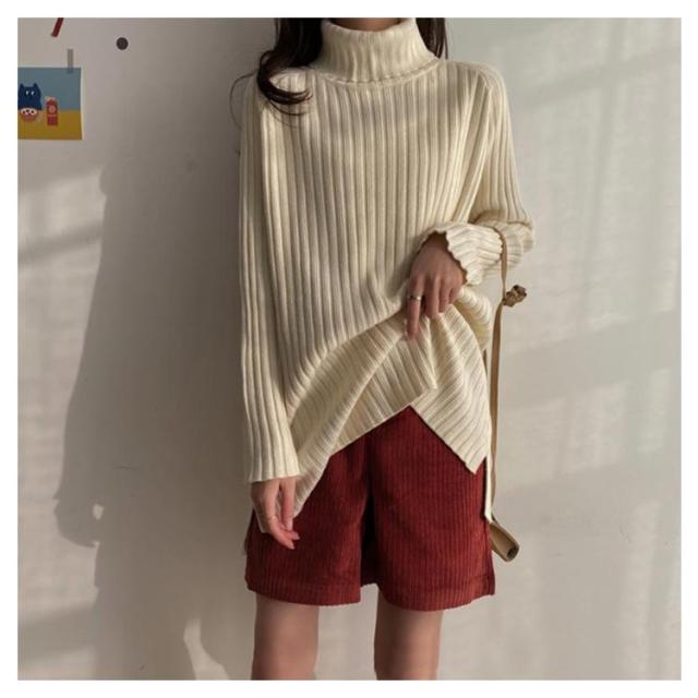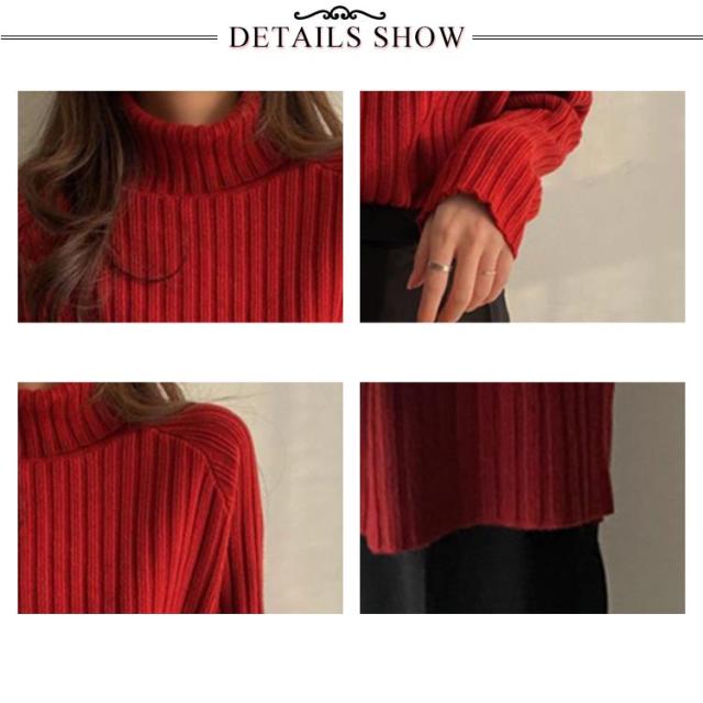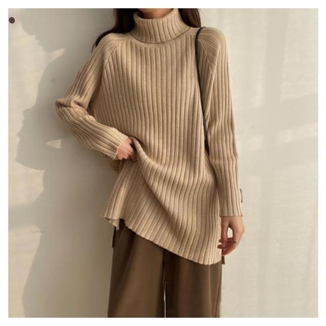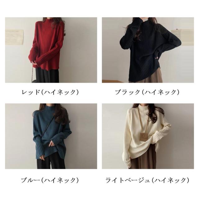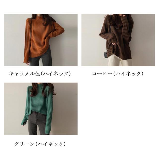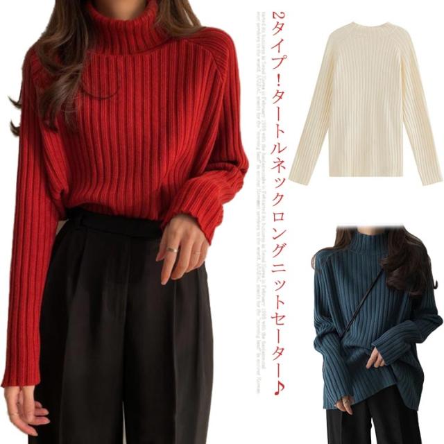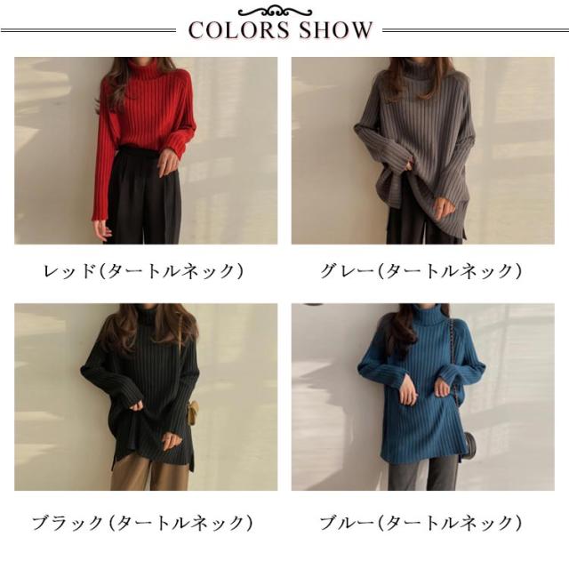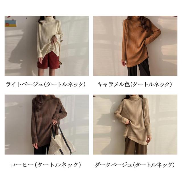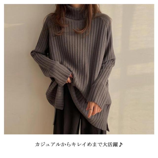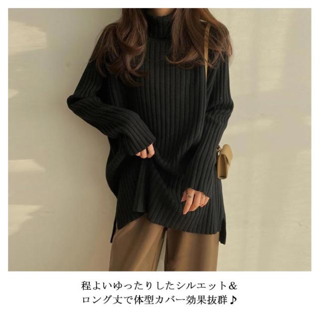 ニット セーター レディース トップス 秋冬 タートルネック ハイネック ロング丈 リブニット 長袖 厚手 ゆったり 体型カバー シンプル 無地 カットソー ニットウェア きれいめ シンプル フリー ふんわり カジュアル