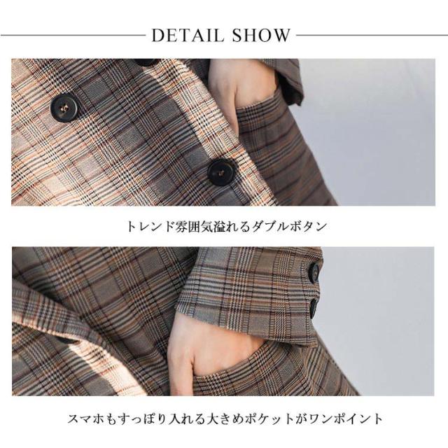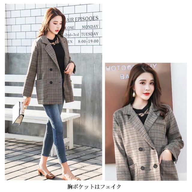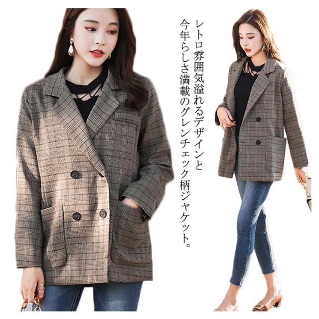 ジャケット アウター テーラードジャケット グレンチェック レディース ゆったり ビッグシルエット チェック柄 お洒落 クラシカル レトロ 大きいサイズ 長袖 春秋 オフィスカジュアル ダブルボタン 体型カバー 着痩せ